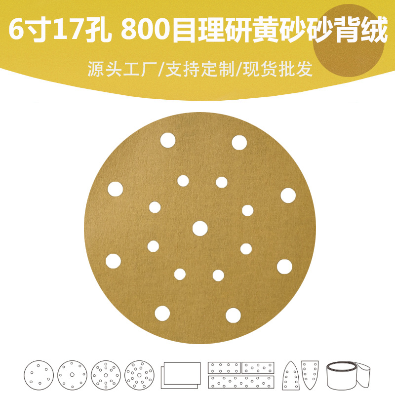 연삭 사포 6 인치 17 구멍 건조 연삭 종이 AP33 노란 모래 백 벨벳 디스크 사포 P800 대외 무역 사포