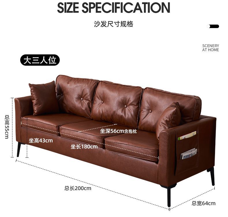 소파 작은 아파트 사무실 임대 방 의류 매장 간단한 거실 휴게소 리셉션 블랙 3 인용 소파