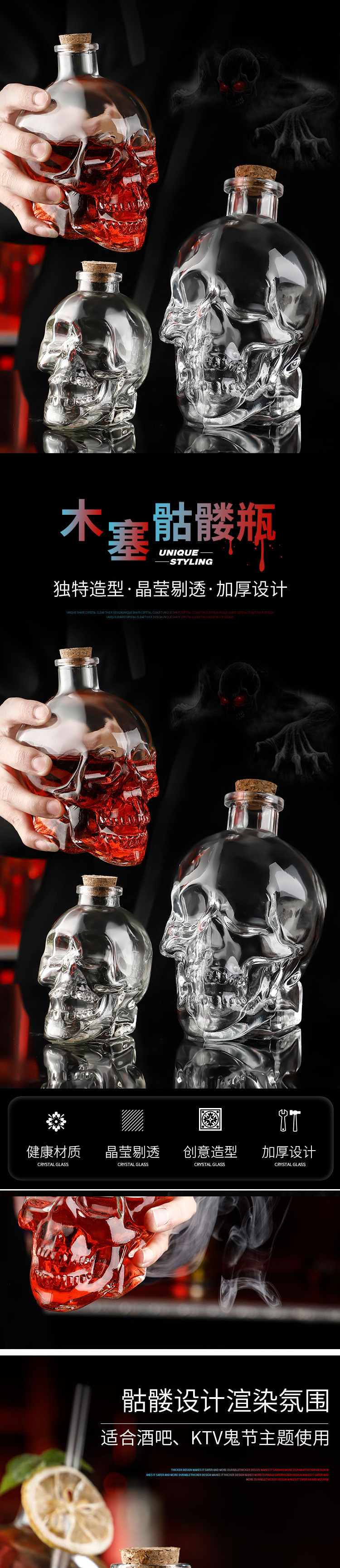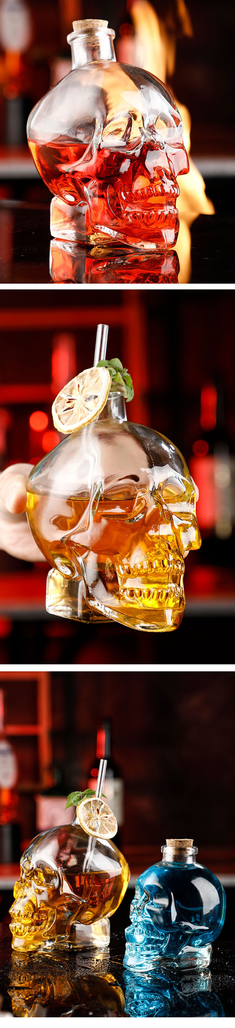 인터넷 유명 인사 투명 해골 와인 병 창조적 인 유리 디캔터 와인 디스펜서 홈 와인 보관 병 뚜껑