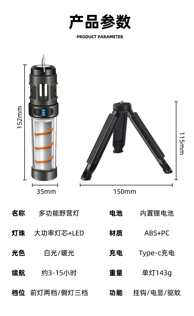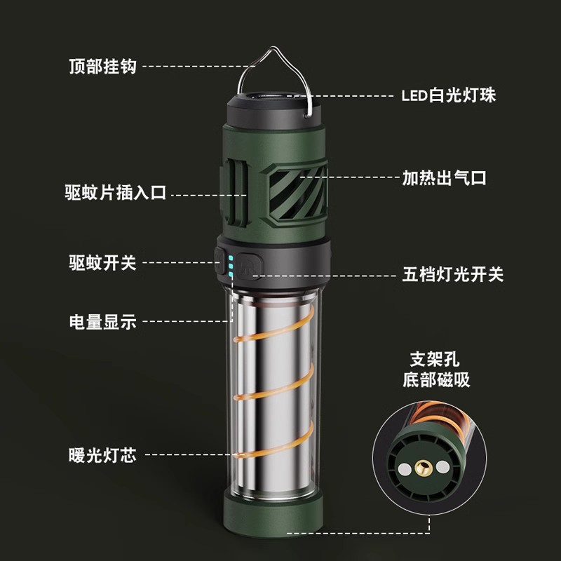 캠핑 램프 캠핑 텐트 모기 생활 모기 구충제 램프 긴 교수형 조명 모기 대기 손전등 자기 흡입 우편스토어 가기