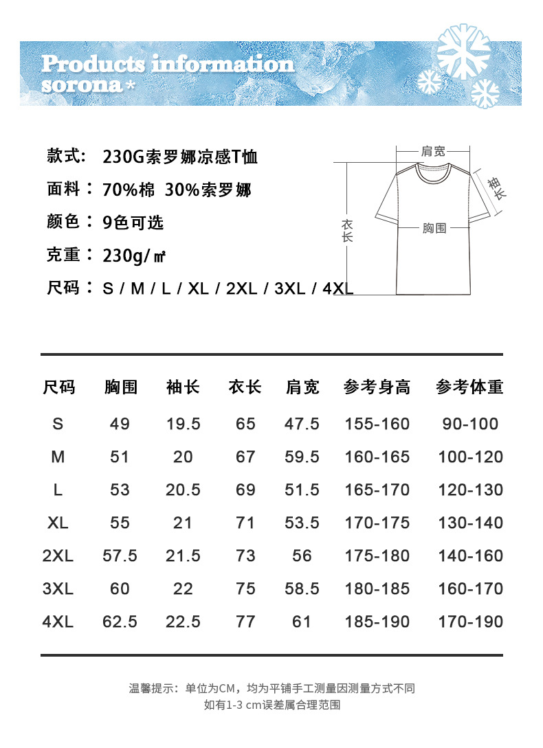 고품질 쿨 솔로나 7A 항균 230g 남성 티셔츠 여름 솔리드 컬러 헤비 라운드 넥 반팔 남성 도매스토어 가기