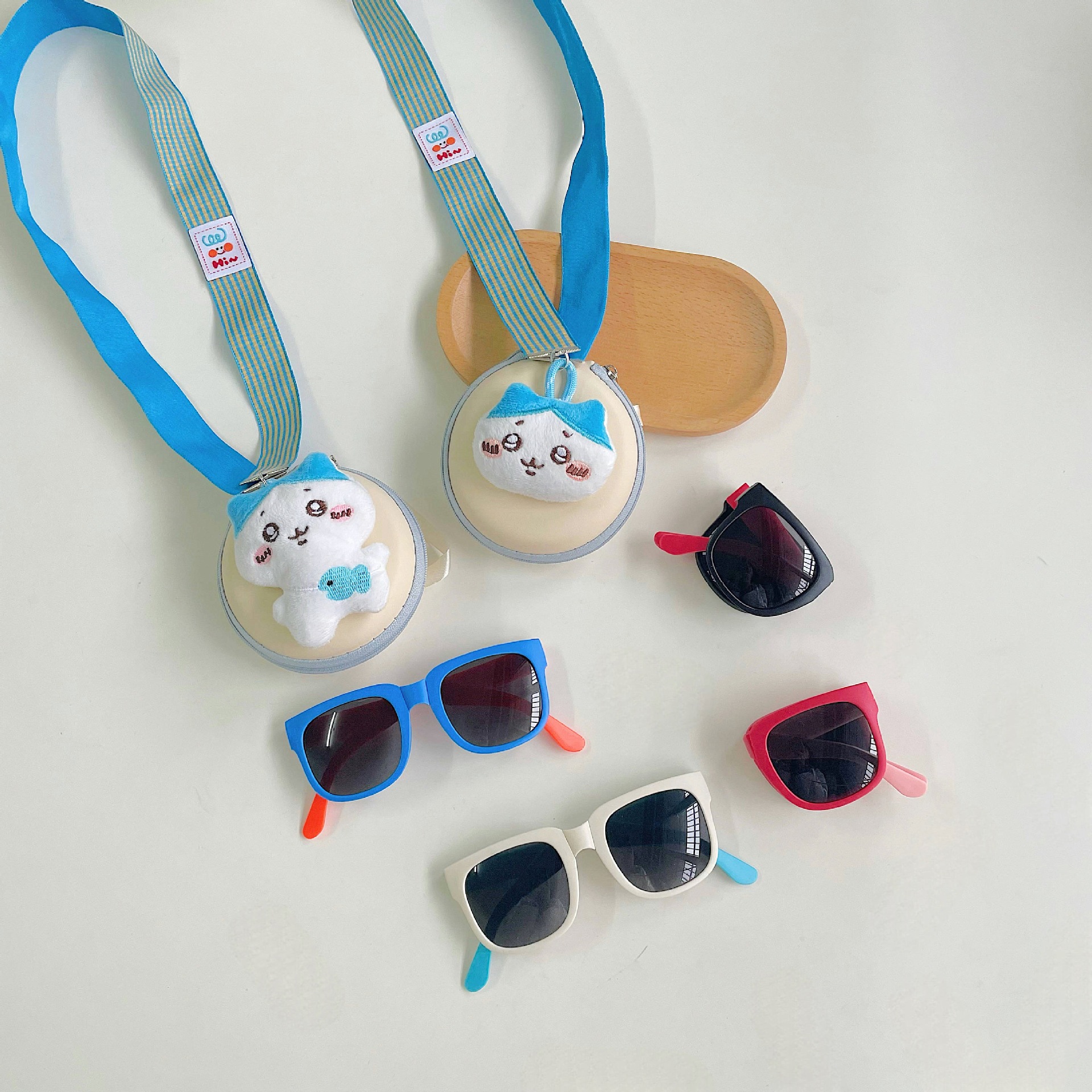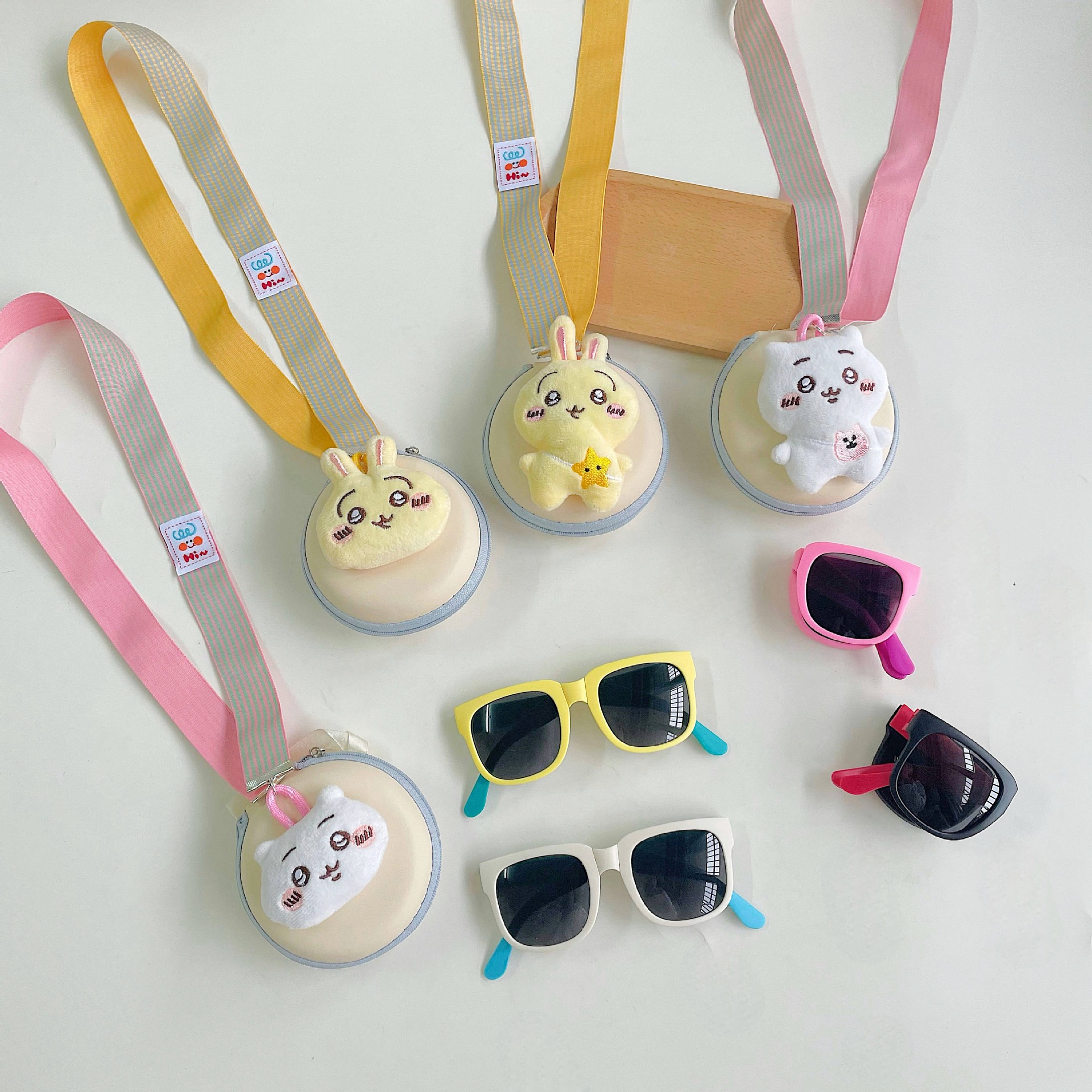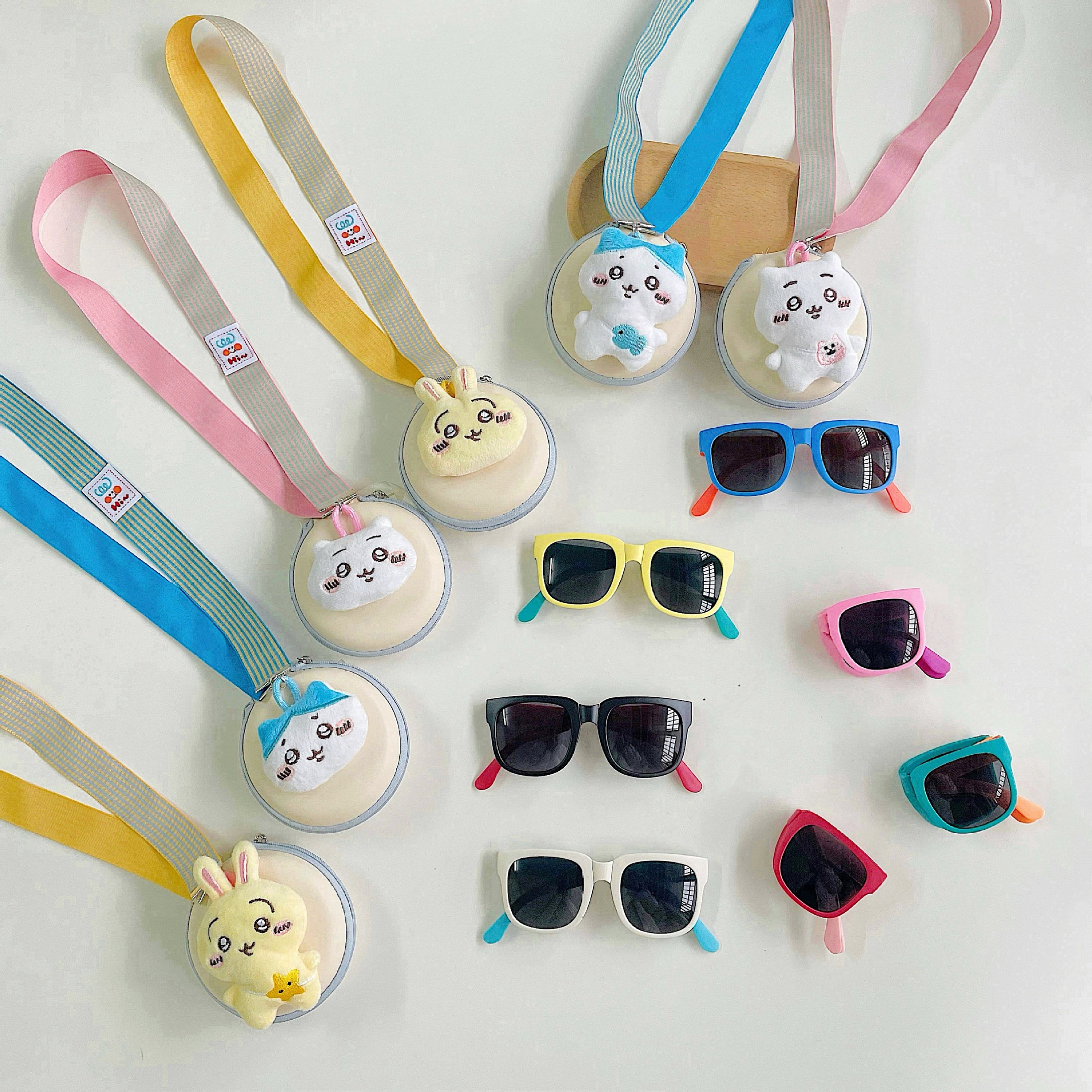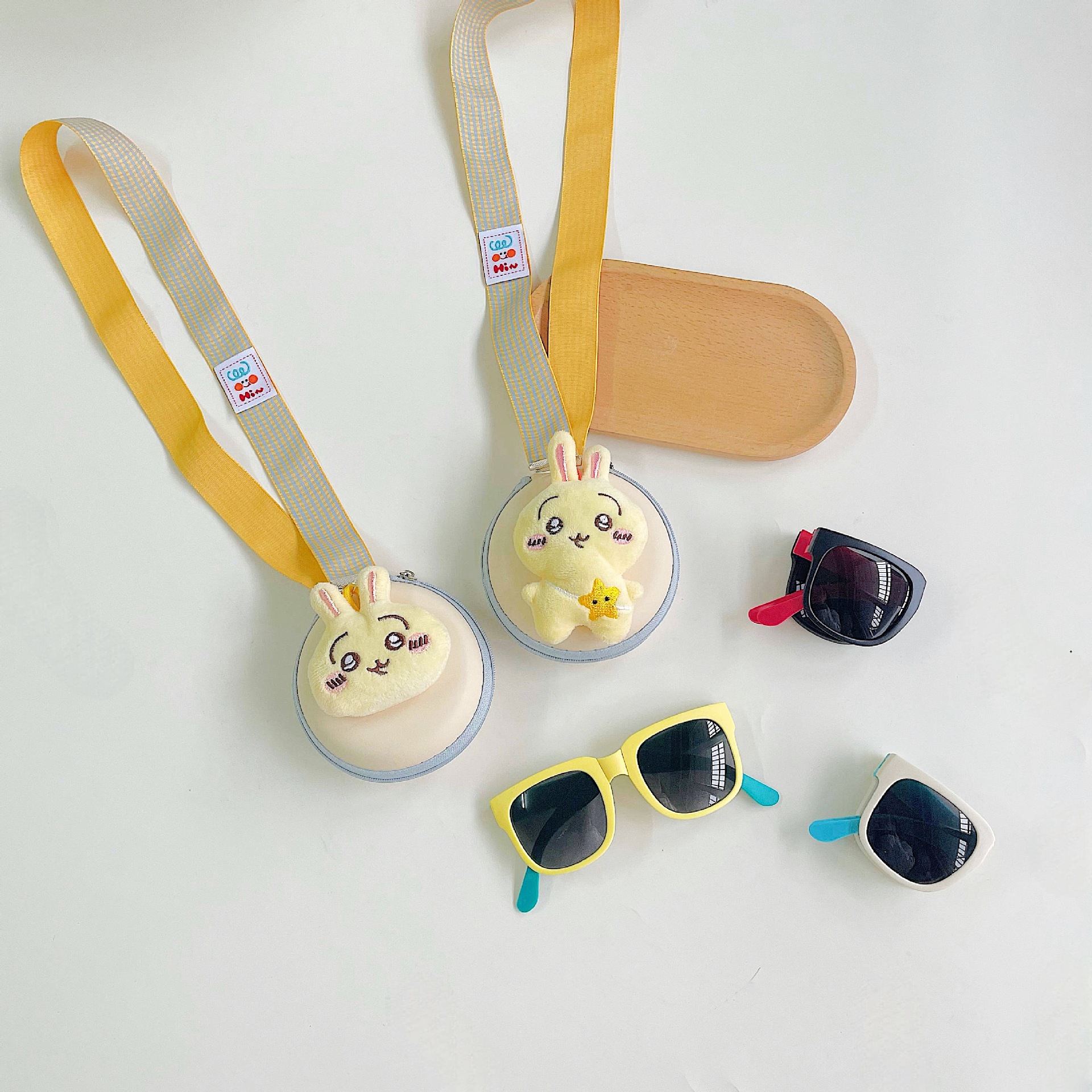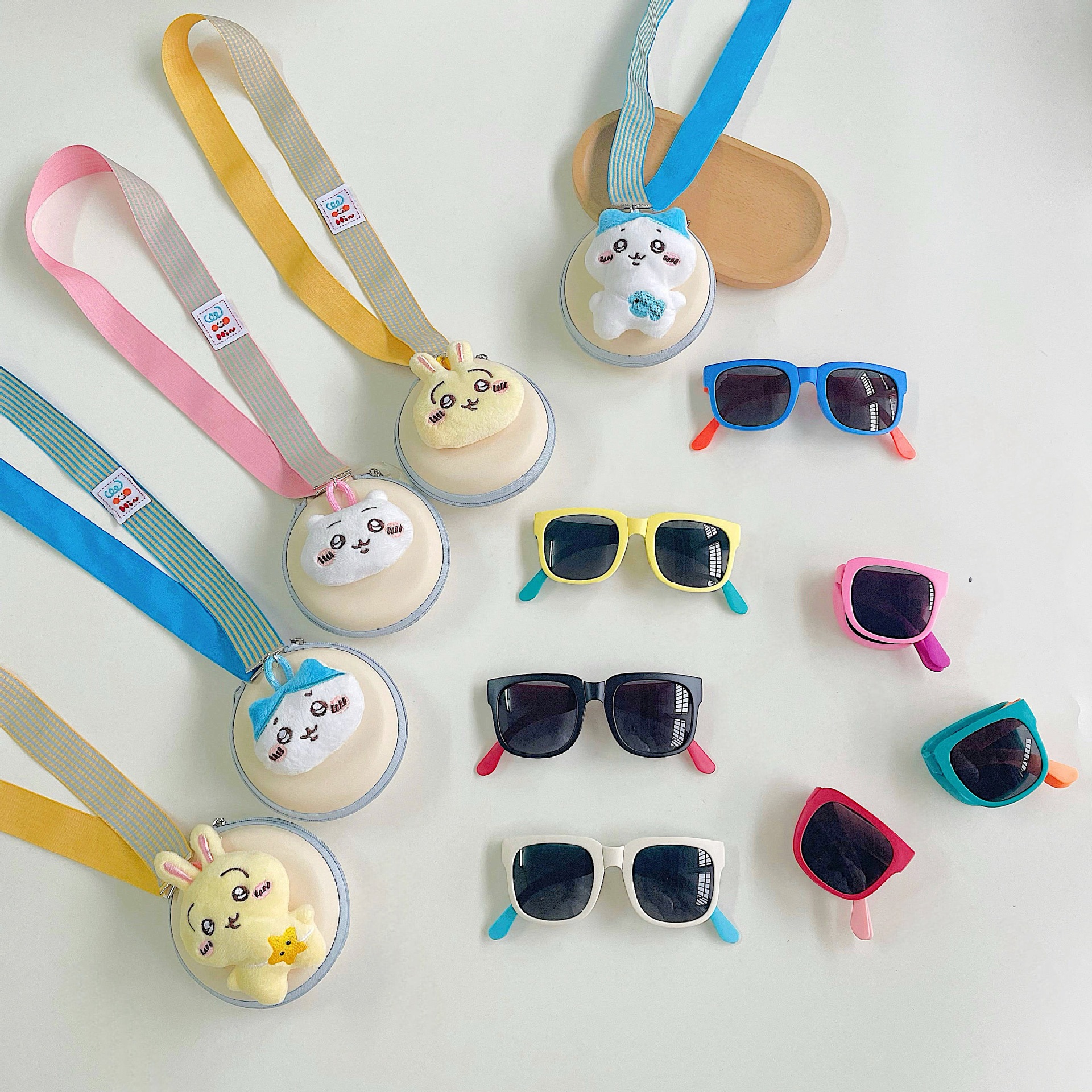 어린이 대비 접는 선글라스 귀여운 인형 보관 상자 세트 분실 방지 휴대용 아기 선글라스스토어 가기