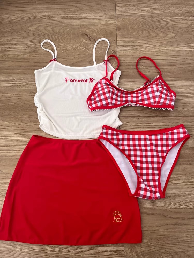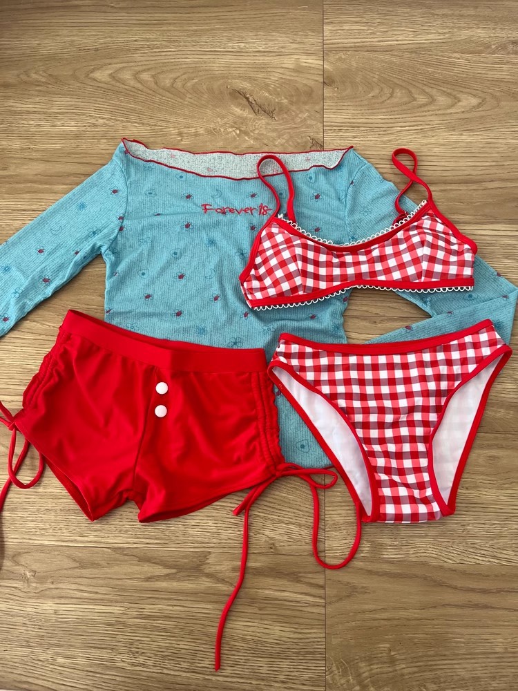 순수한 욕망 긴팔 선 스크린 블라우스 4 피스 세트 스플릿 비키니 수영복 여성용 해변 도파민웨어 세트스토어 가기