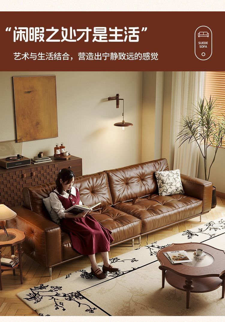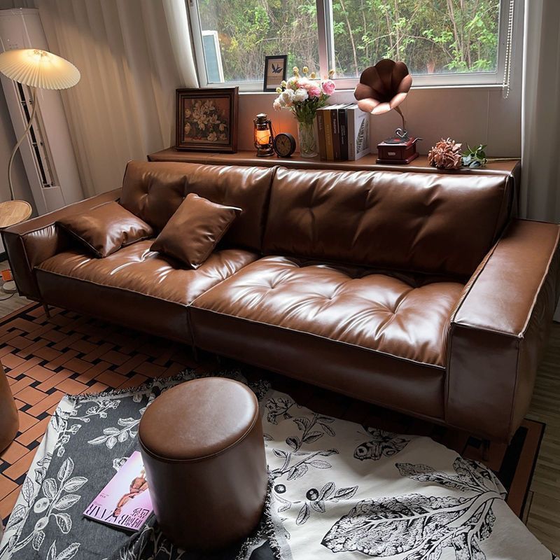 북유럽 이탈리아 스타일 미니멀리스트 가죽 소파 거실 작은 아파트 하이 엔드 가정용 빛 럭셔리 더블 3 인 스트레이트 행 캐주얼 소파스토어 가기