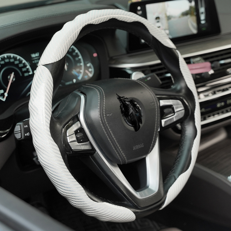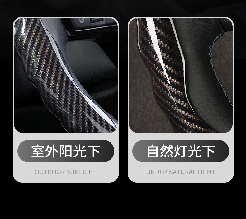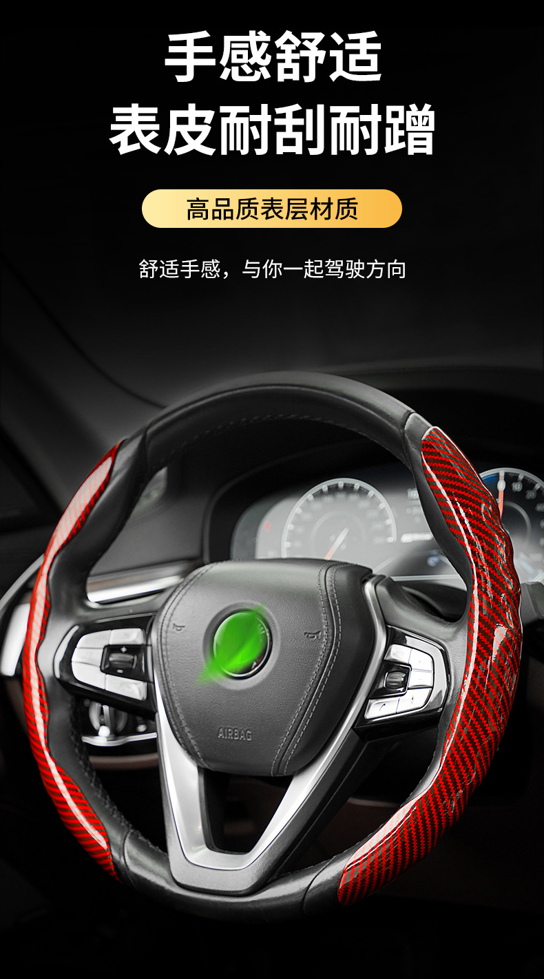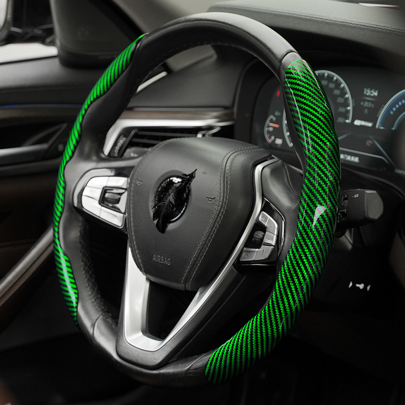 웨이브 레이저 광택 카본 파이버 패턴 자동차 사계절용 스티어링 휠 커버 미끄럼 방지 초박형 고급 카드 커버