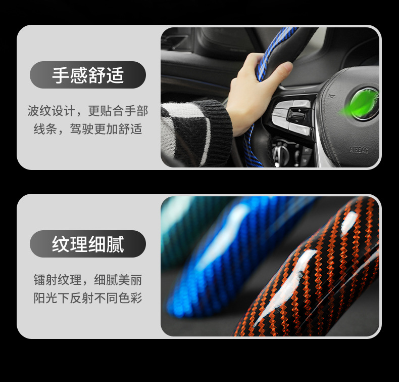 웨이브 레이저 광택 카본 파이버 패턴 자동차 사계절용 스티어링 휠 커버 미끄럼 방지 초박형 고급 카드 커버스토어 가기