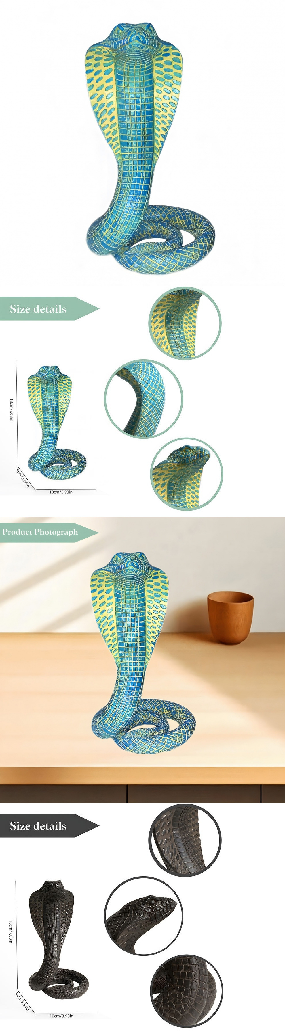 국경 간 코브라 장식품 수지 동물 같은 데스크탑 보석 사무실 개회식 뱀스토어 가기