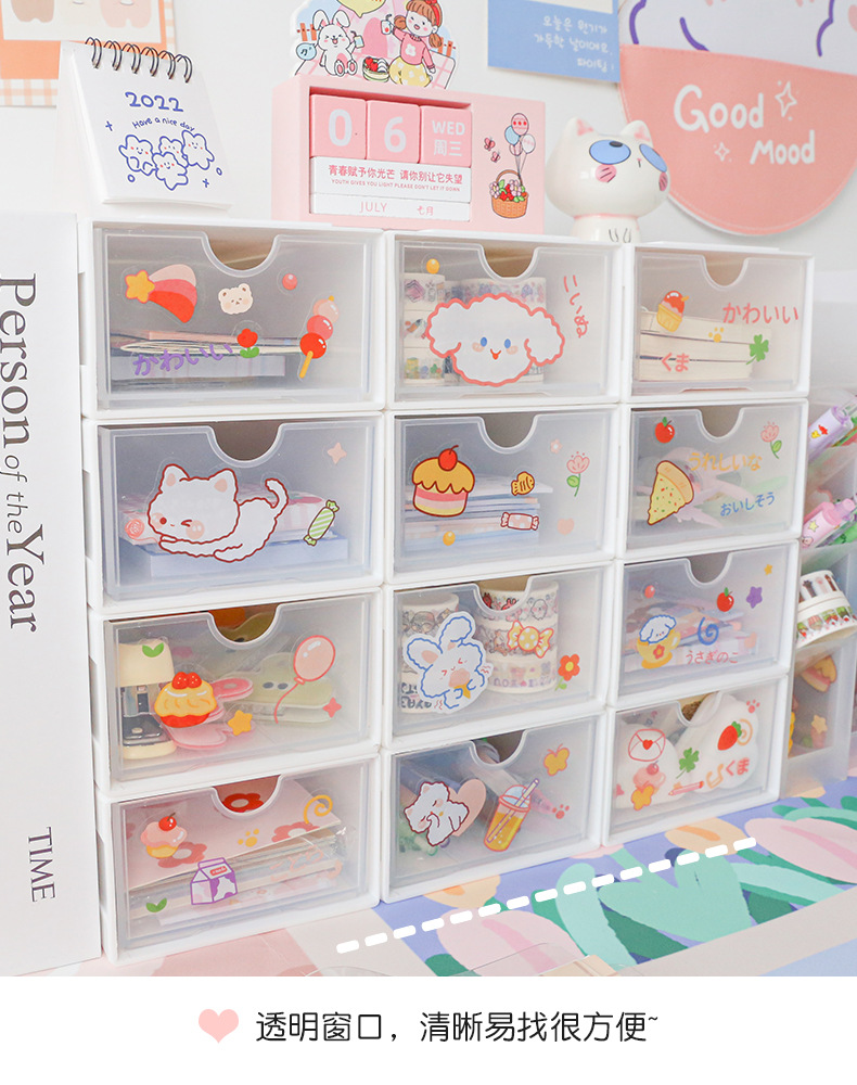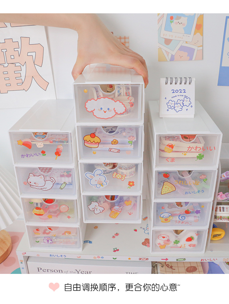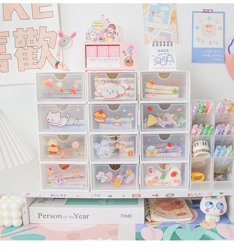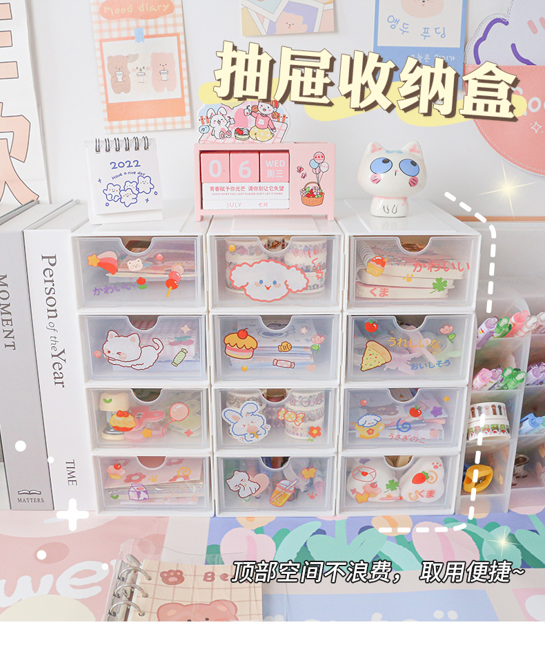 데스크탑 스토리지 박스 서랍 유형 학생 Ins 투명 데스크 문구 화장품 사무실 주최자 스토리지 랙