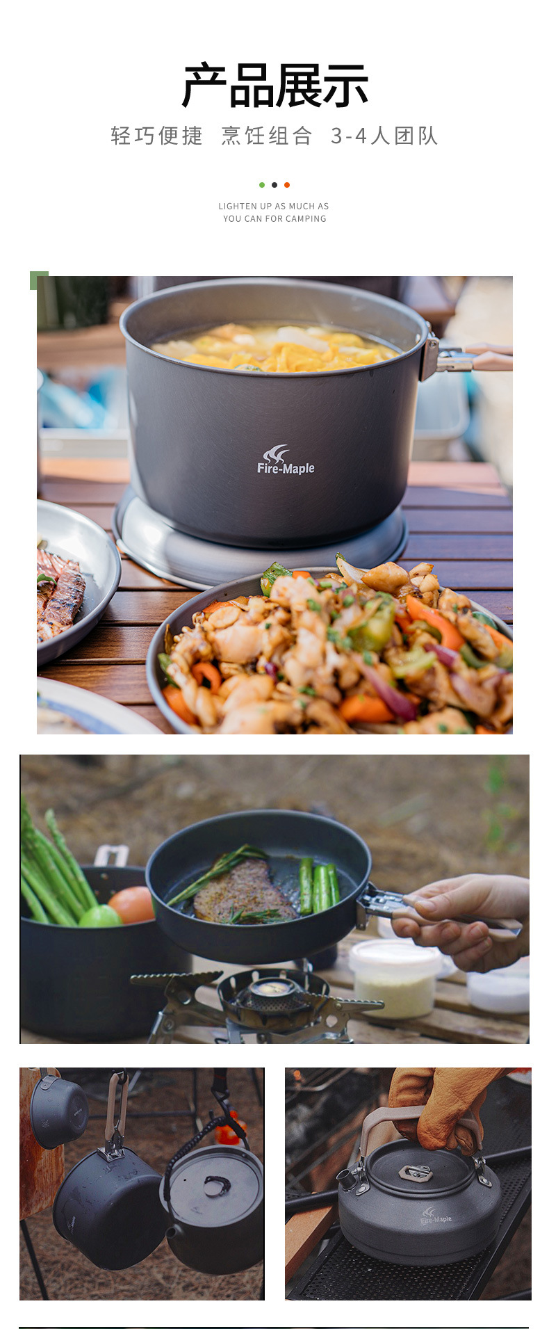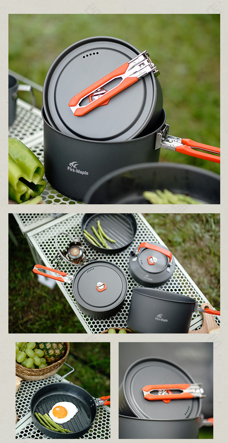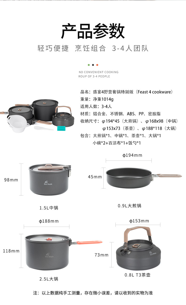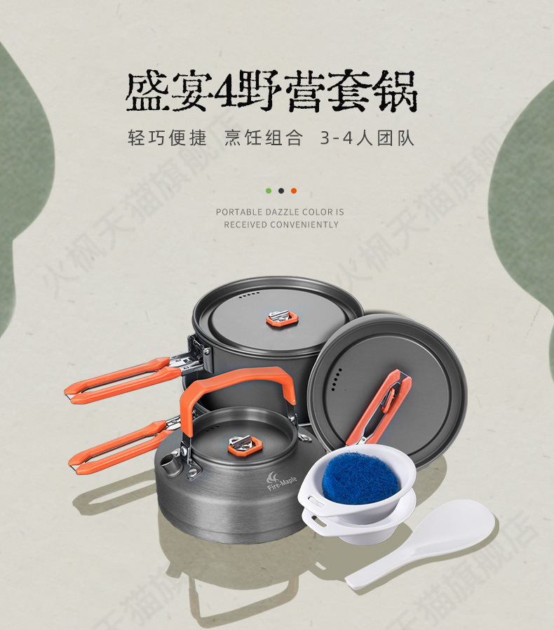 화재 단풍 향연 4 야외 냄비 캠핑 3-4 인 세트 냄비 휴대용 접이식 필드 조리기구 0.8L 주전자