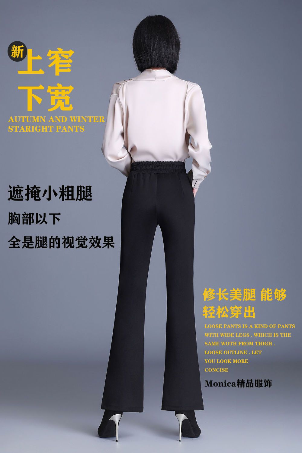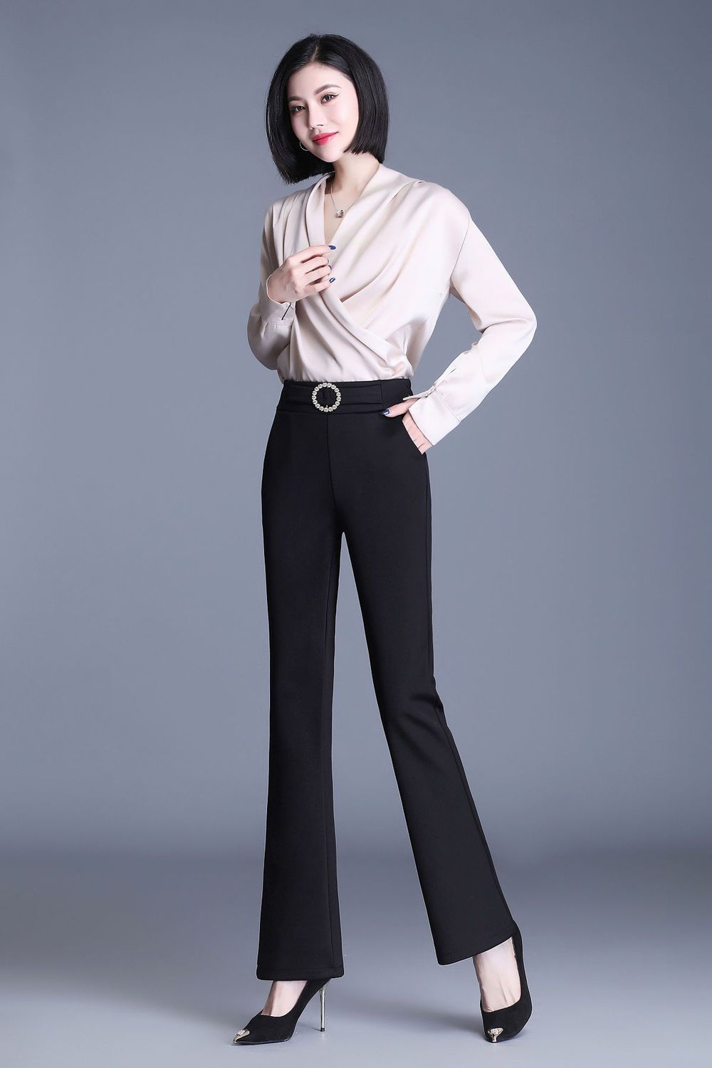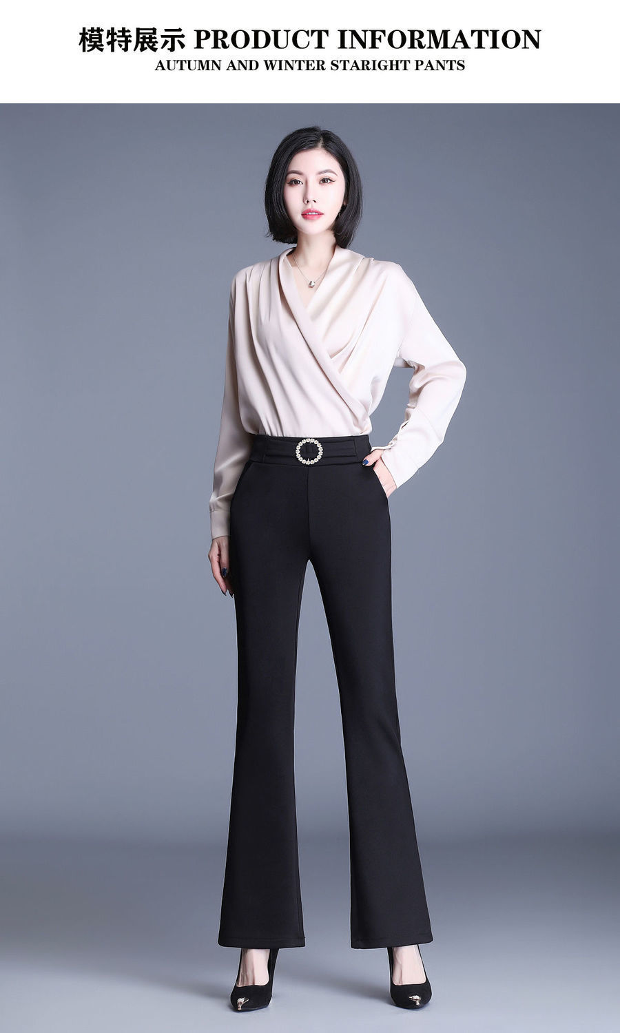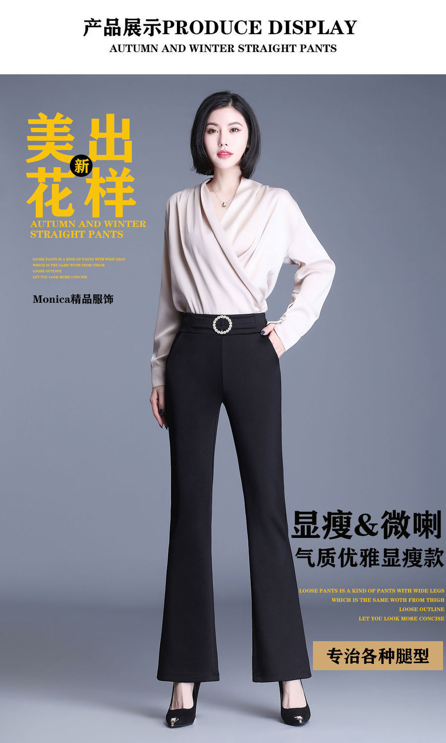 봄과 여름 2025 세트 플레어 팬츠 여성용 하이 웨이스트 슬림 핏 슬리밍 블랙 올 매치 드레인 센스 스트레치 허리 캐주얼스토어 가기