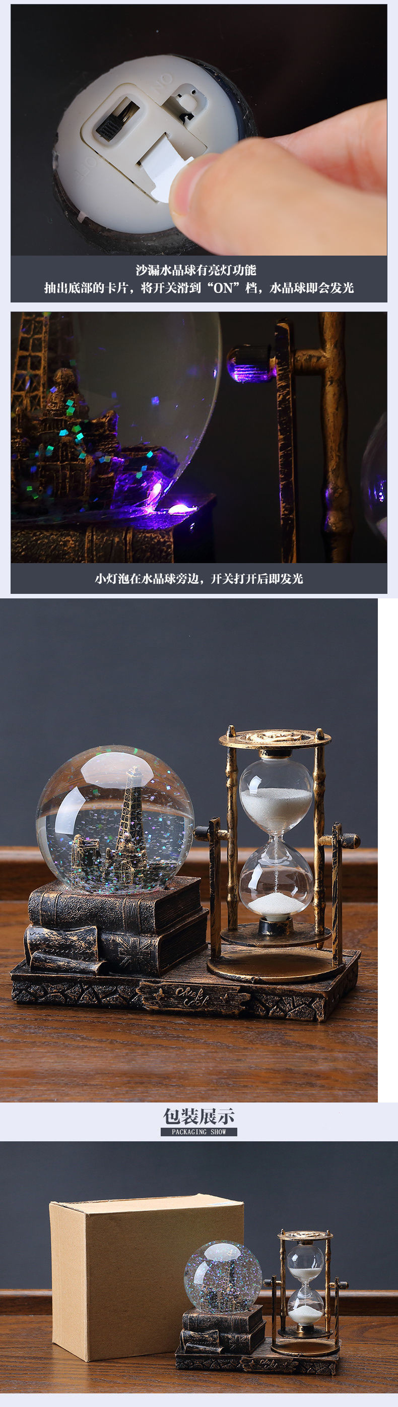 • 황금 책 모래시계 수정구 + [조명] + 소형 전자제품