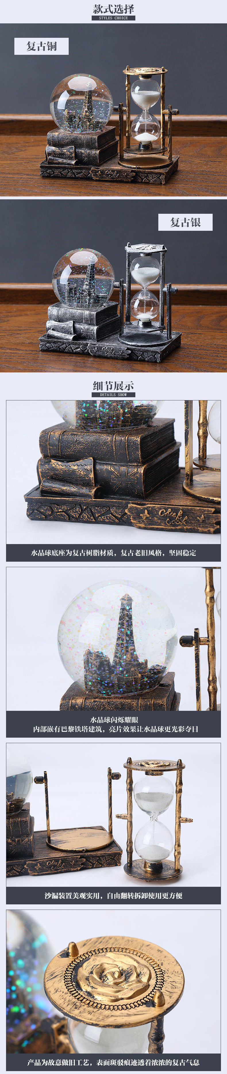 크리스탈 볼 모래 시계 타이머 창조적 인 장식 거실 와인 캐비닛 룸 유리 장식 여성을위한 졸업 생일