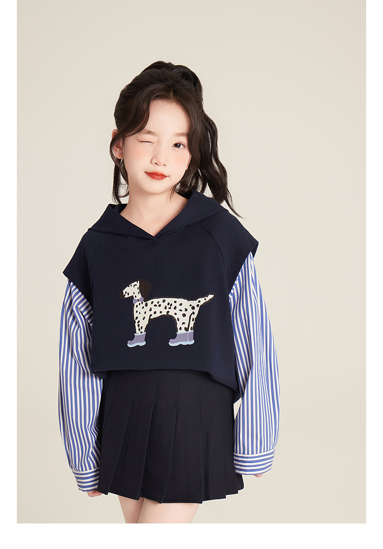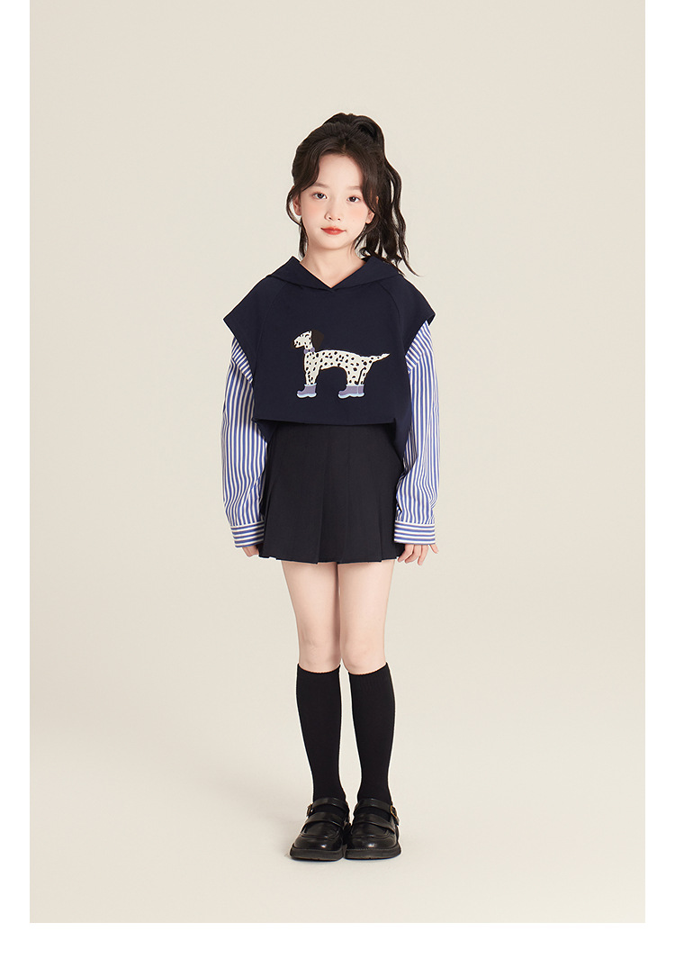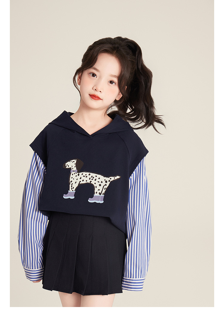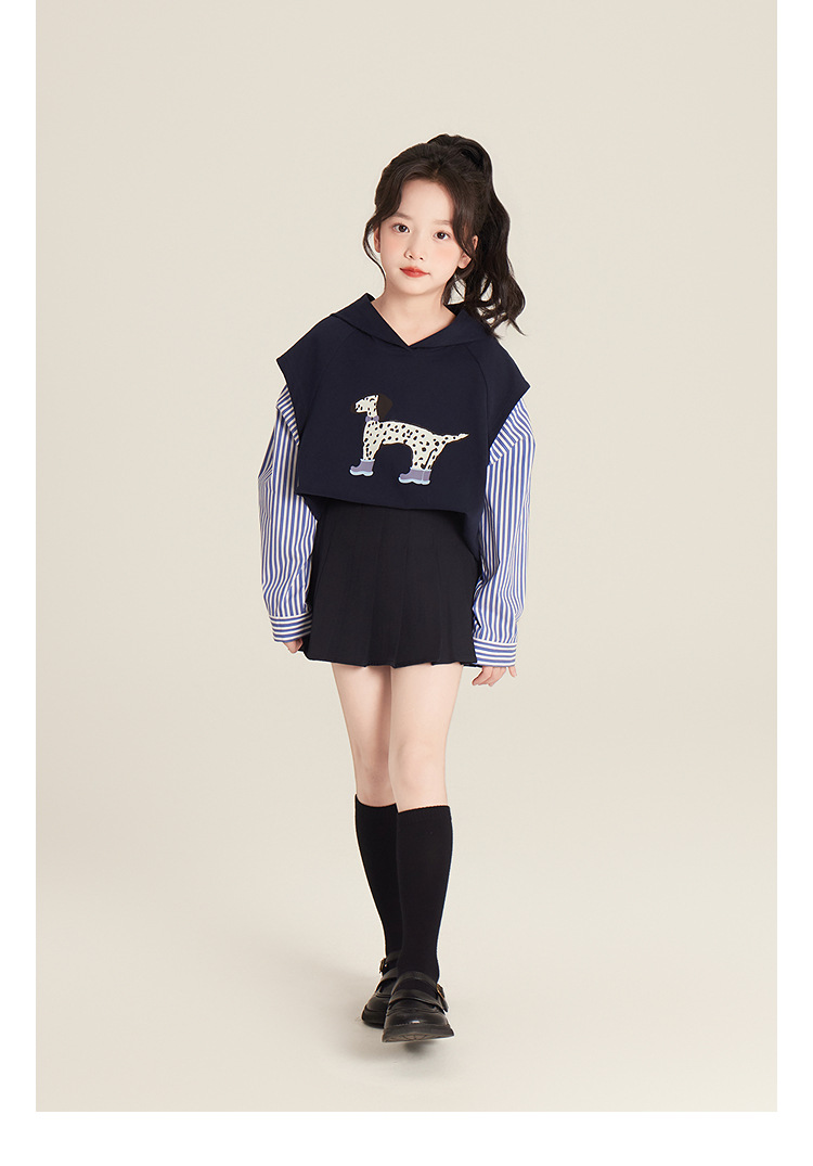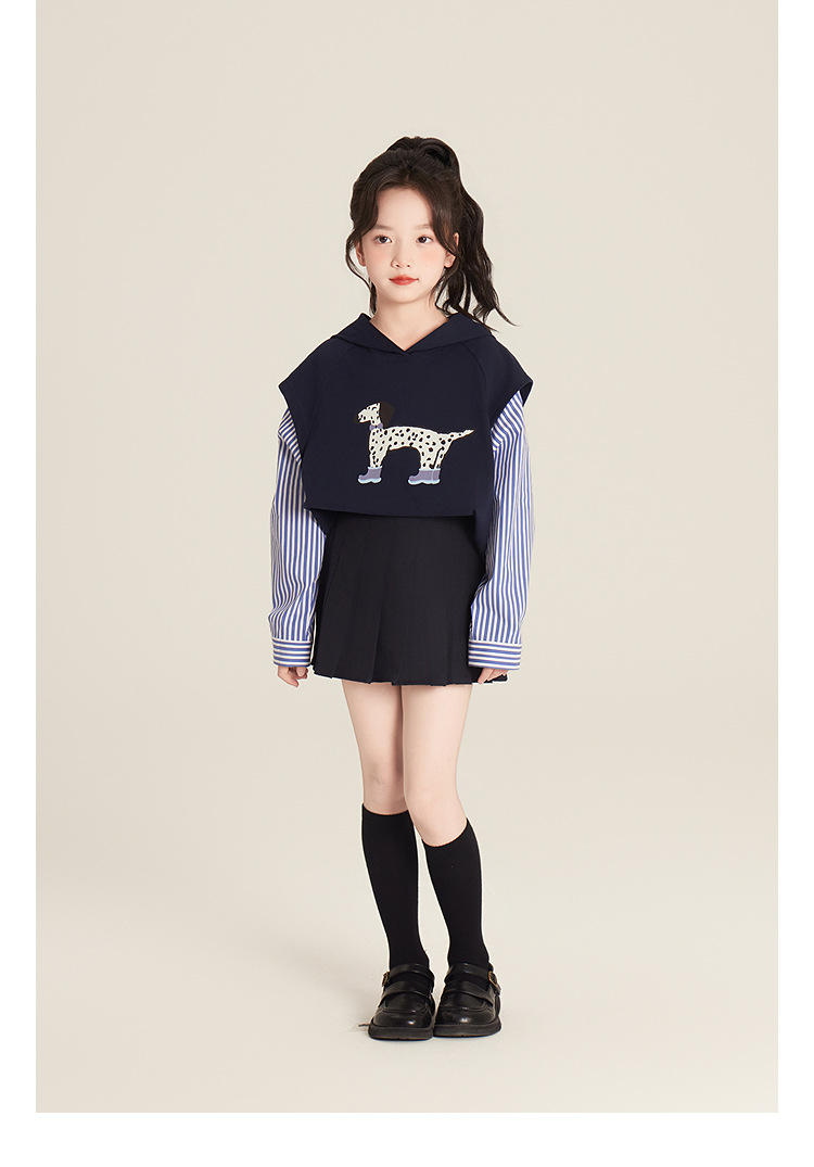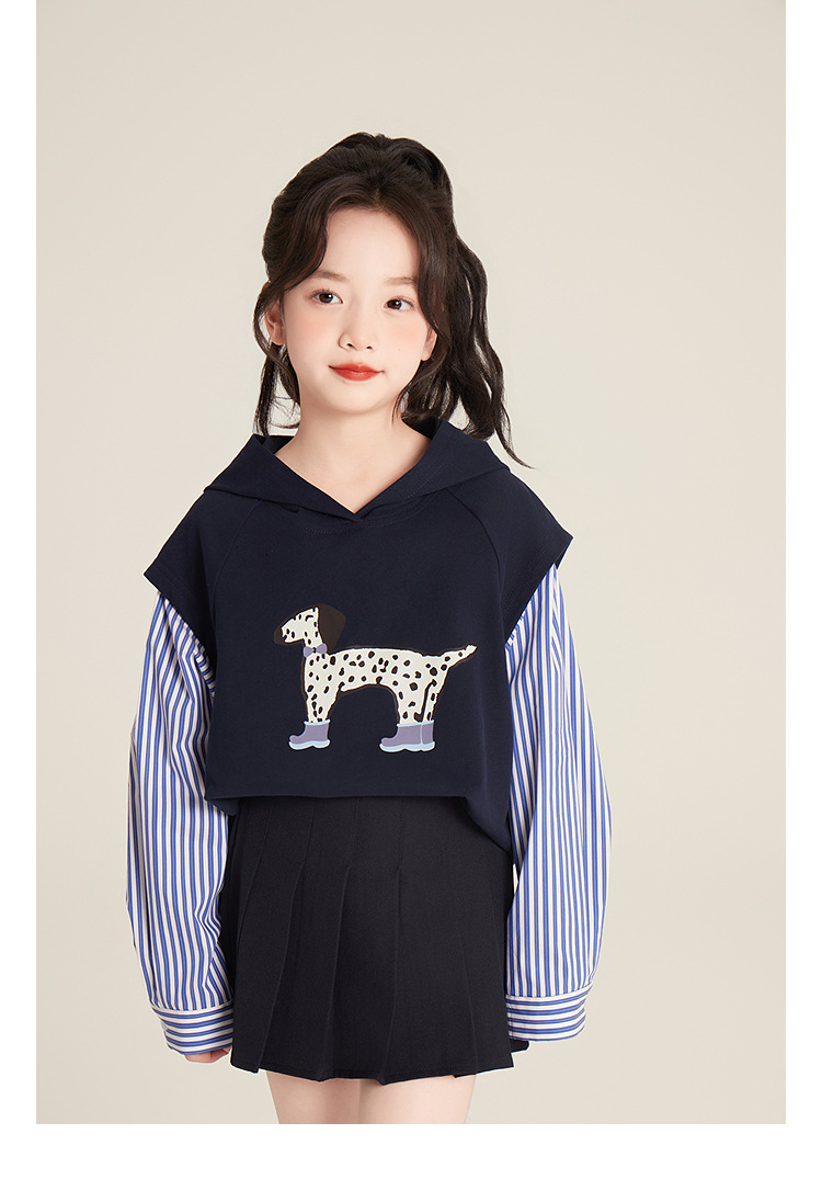 Amybaby Girl's Top Spring 2025 새로운 빈티지 바느질 미국 스타일 Dalmatians 인쇄 긴 소매 탑스토어 가기