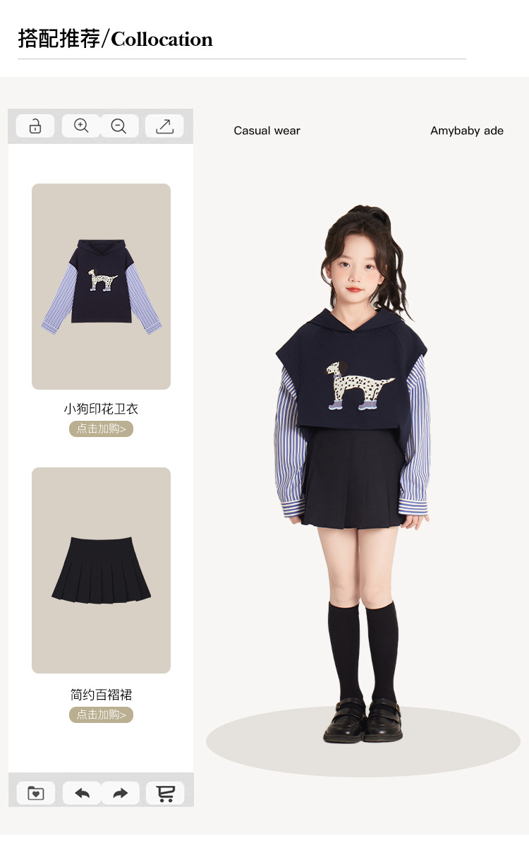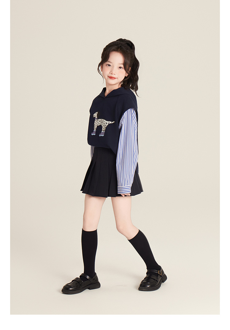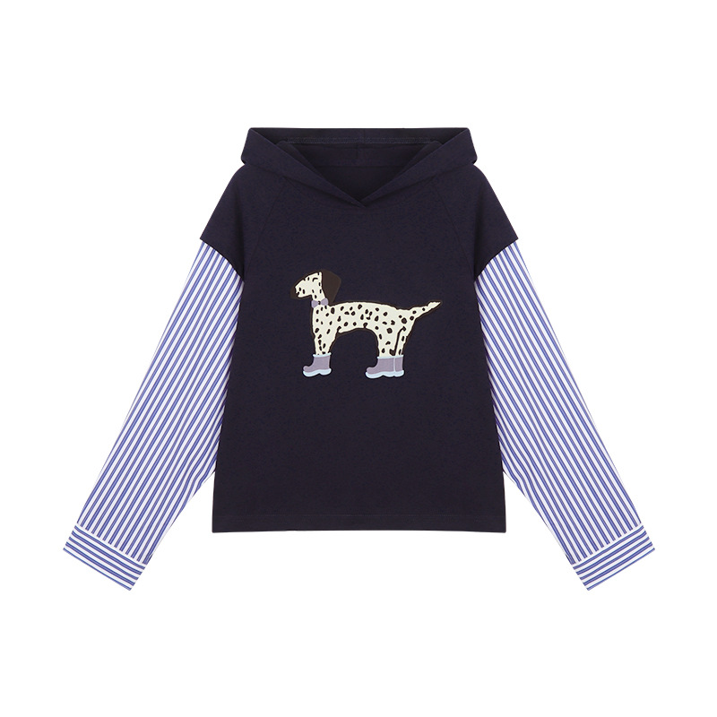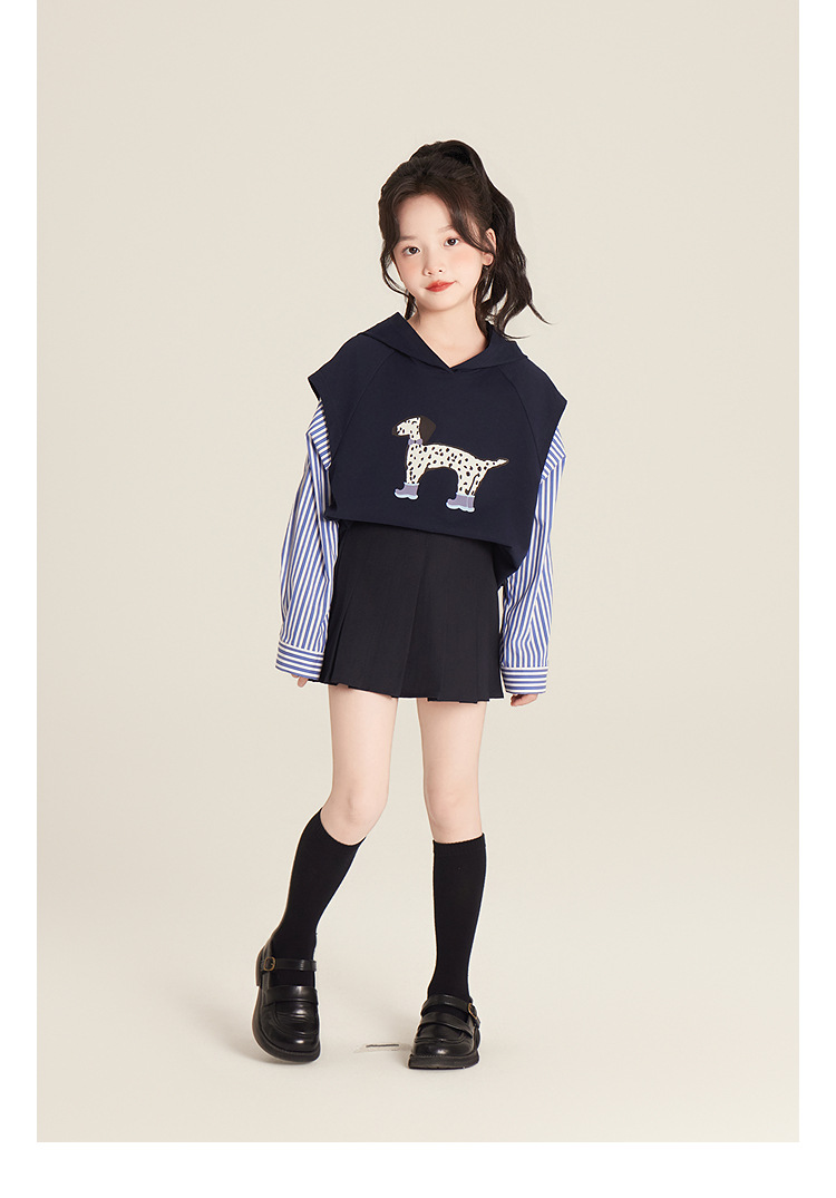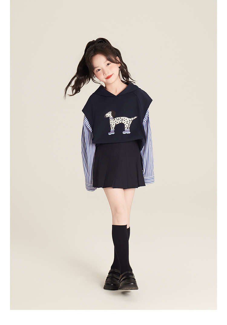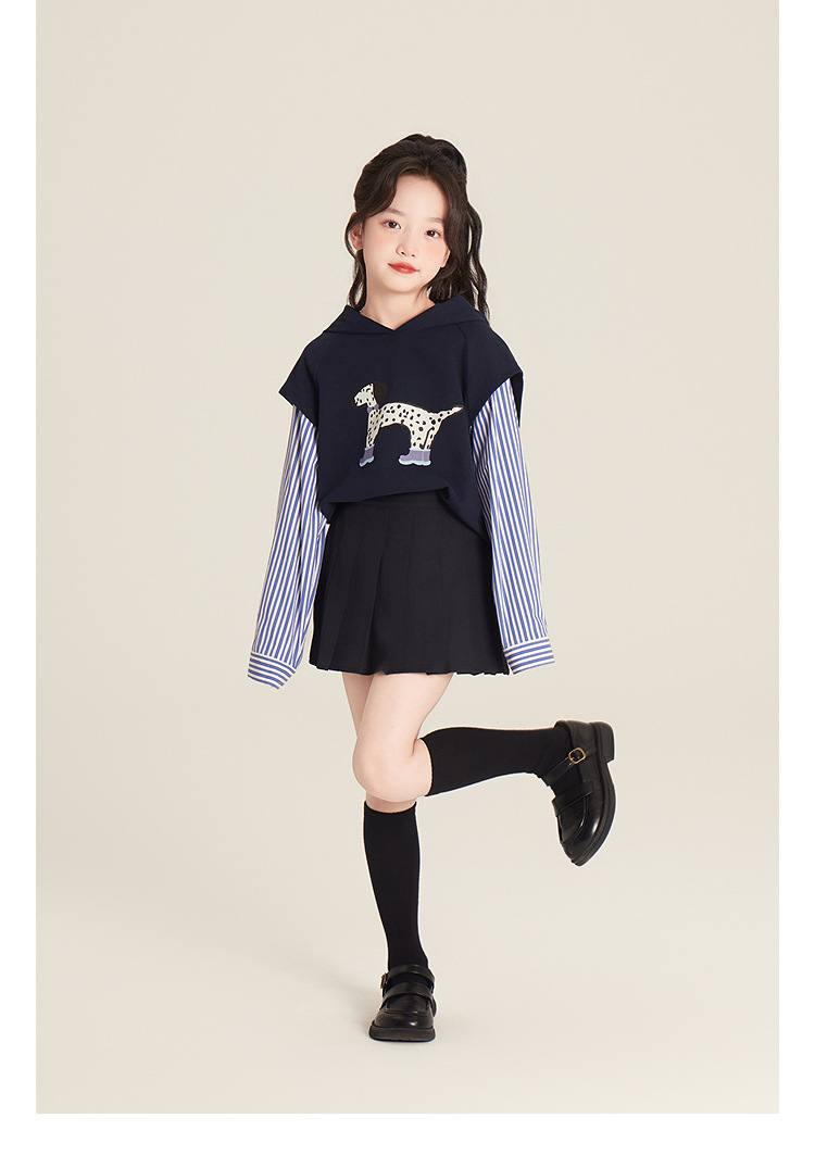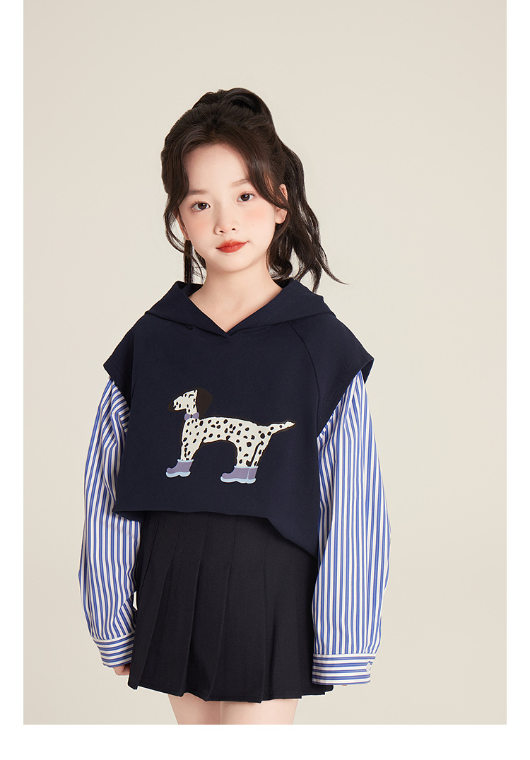 Amybaby Girl's Top Spring 2025 새로운 빈티지 바느질 미국 스타일 Dalmatians 인쇄 긴 소매 탑스토어 가기