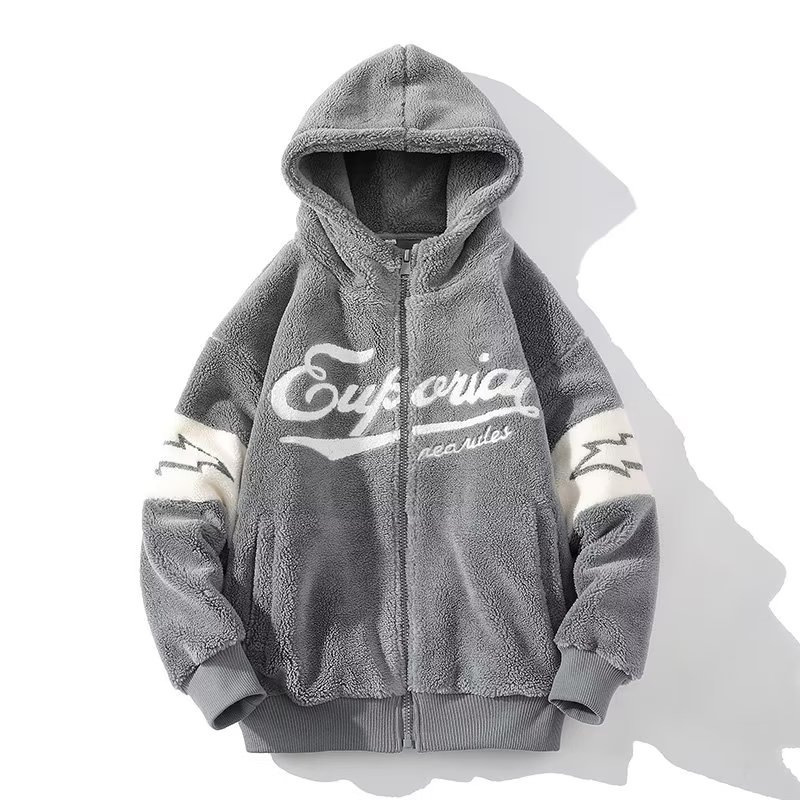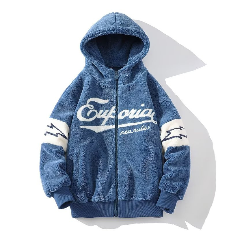 2025 가을과 겨울 양고기 남성용 트렌디 한 청소년 재킷 느슨한 캐주얼 따뜻한 스웨트 셔츠스토어 가기