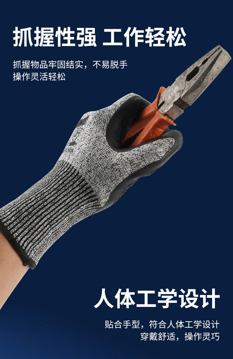 라텍스 코팅 절단 방지 장갑 노동 보호 장갑 HPPE 5등급 절단 방지 주름 보호 장갑 공장 도매