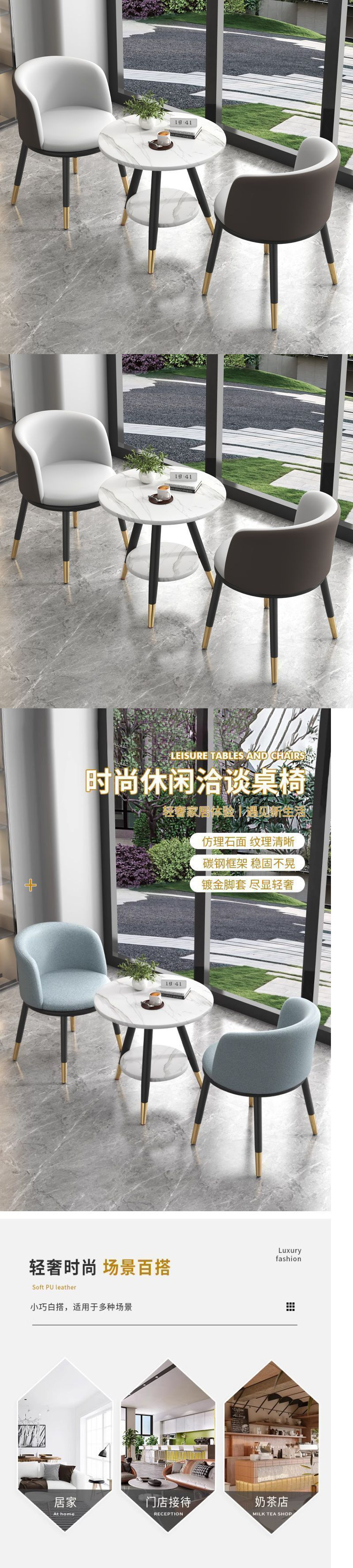 • 블루 그레이 브라운 조합 [고급 가죽] 테이블 1개와 의자 2개 [복층 테이블]