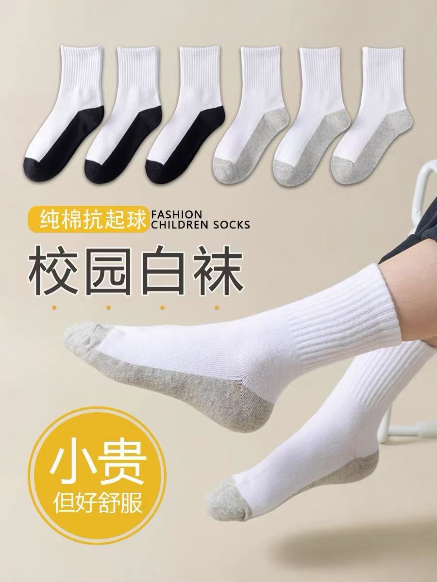 학생용 면 양말 봄 가을 여아용 심플하고 다용도 중간 길이 스포츠 양말 남아용 흰색 검정 바닥 얼룩 방지 어린이 양말