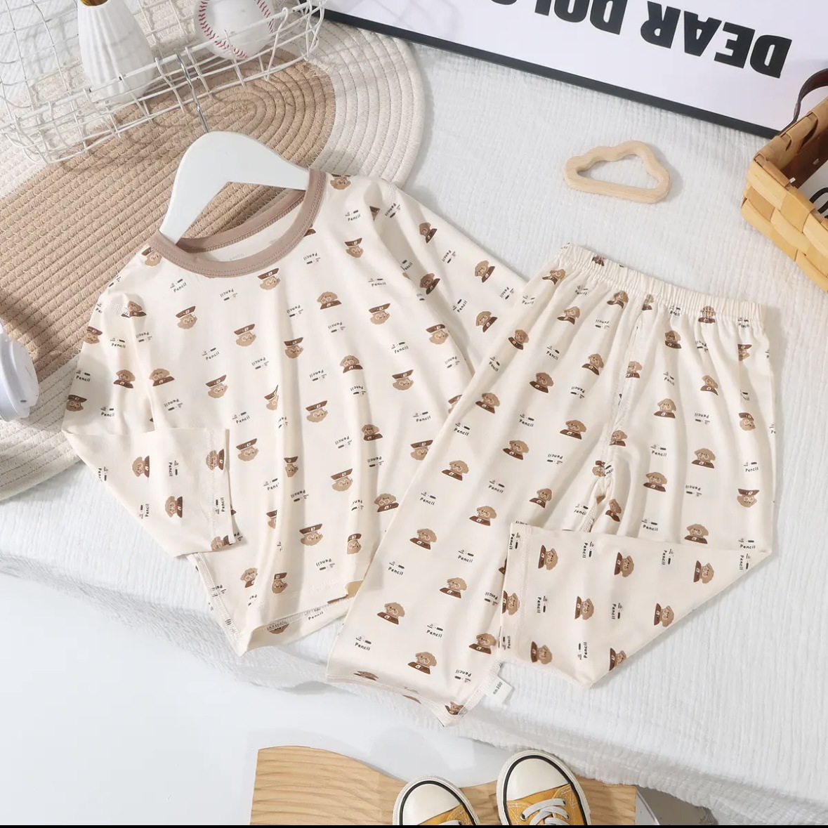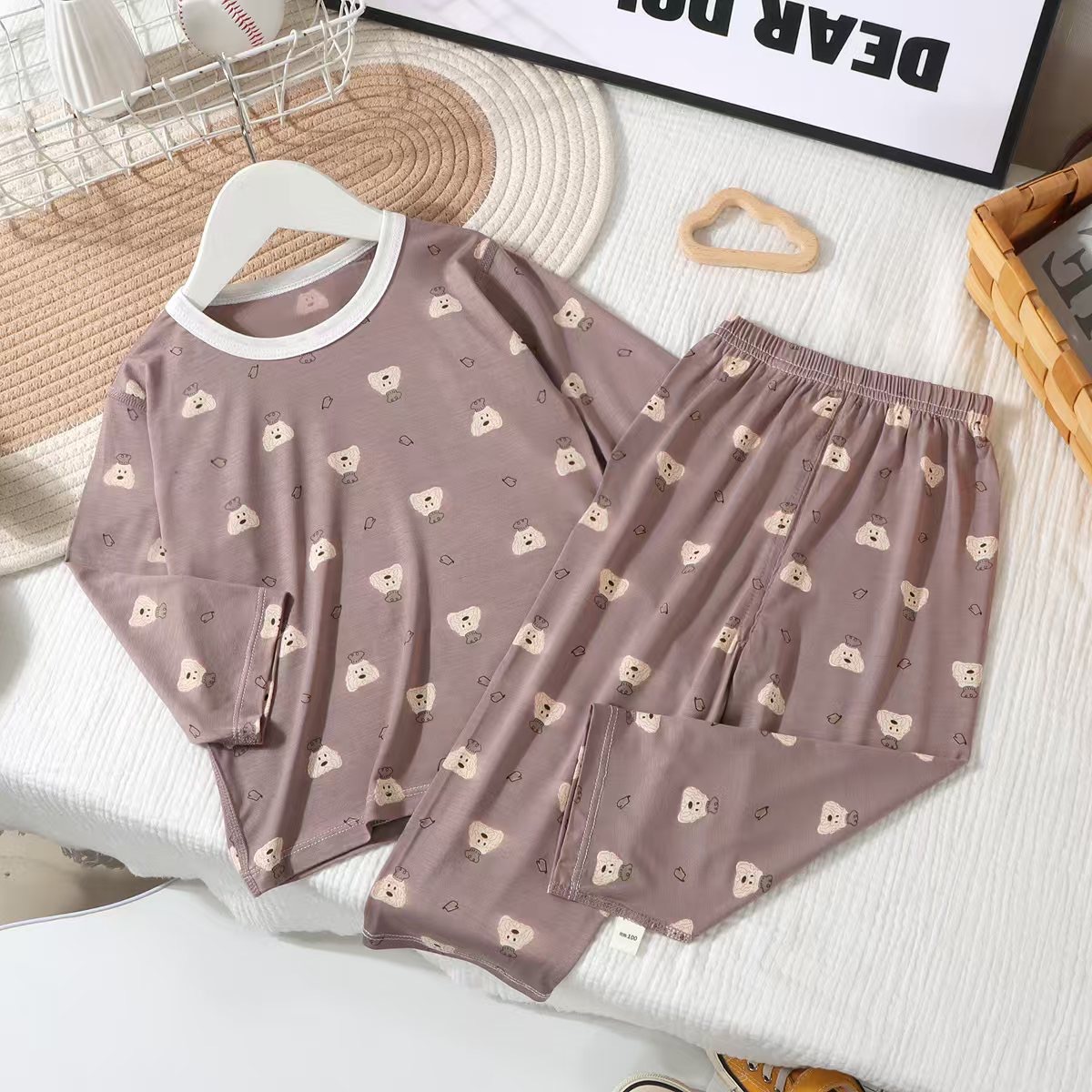 소년 소녀를위한 얇은 통기성 홈 의류 세트 어린이 여름 텐셀 잠옷 아기의 피부 친화적 인 중형 및 긴 소매 에어컨 옷스토어 가기