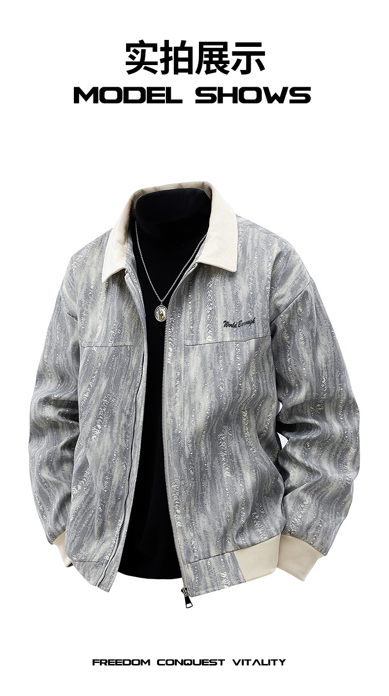 봄과 가을 트렌디 한 홍콩 스타일 남성 패션 컬러 블록 스퀘어 칼라 재킷 통통한 대형 플러스 뚱뚱한 느슨한 캐주얼 자켓스토어 가기