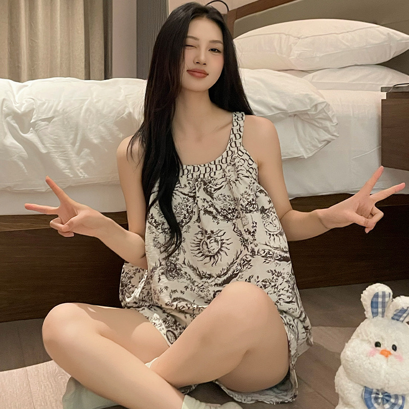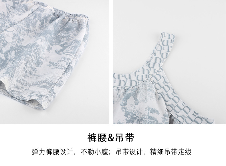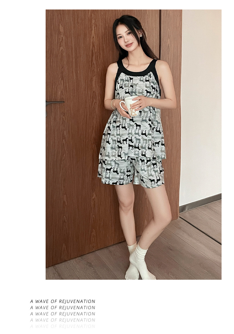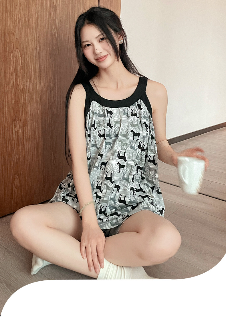 가슴 패드가 달린 잠옷 여자 여름 컬러 블록 슬링 세트 민소매 조끼 플러스 사이즈 반바지 얇은 홈 옷을 입고