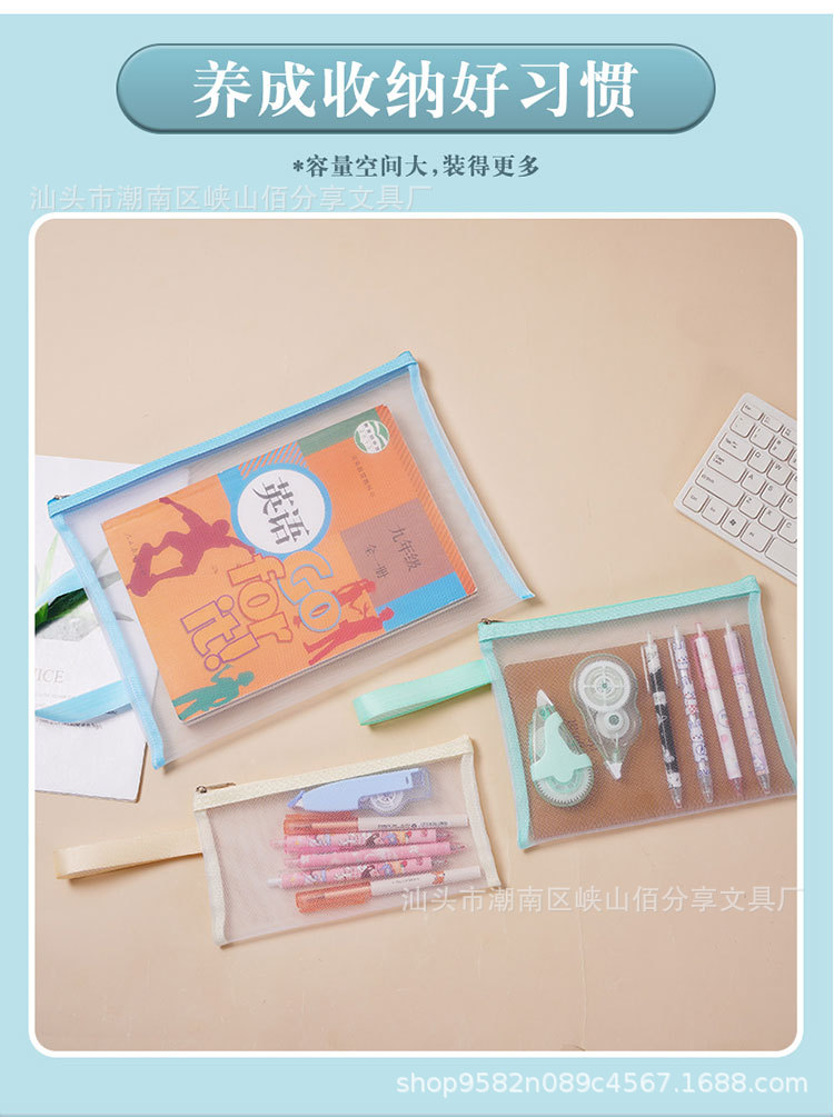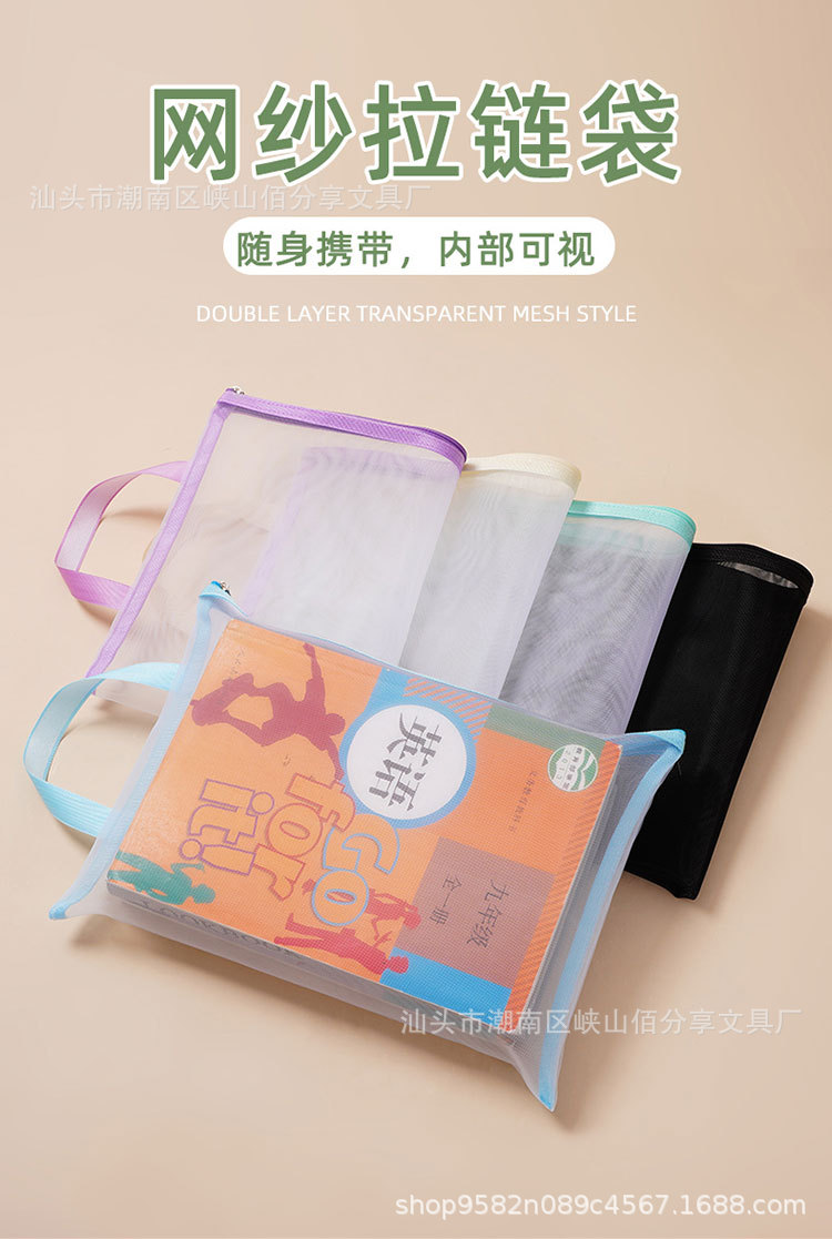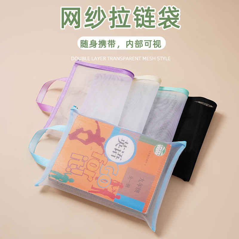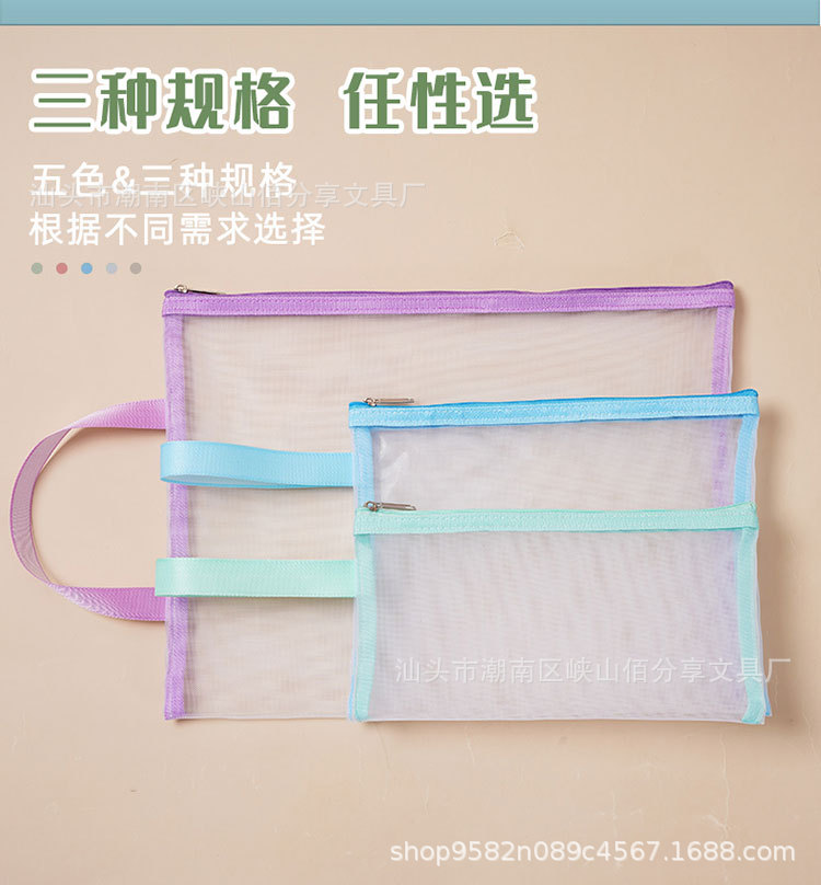 A4 투명 문서 가방 나일론 메쉬 지퍼 테스트 종이 정보 가방 분류 저장 가방 사무실 학생 핸드백스토어 가기