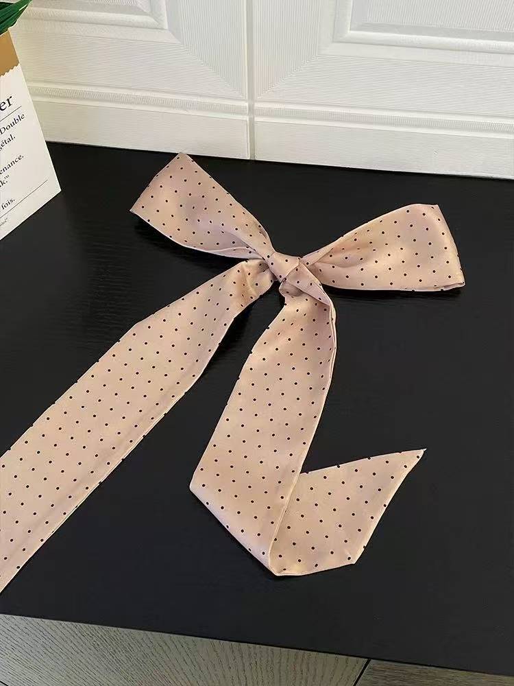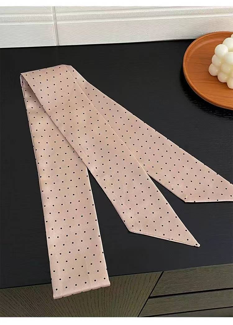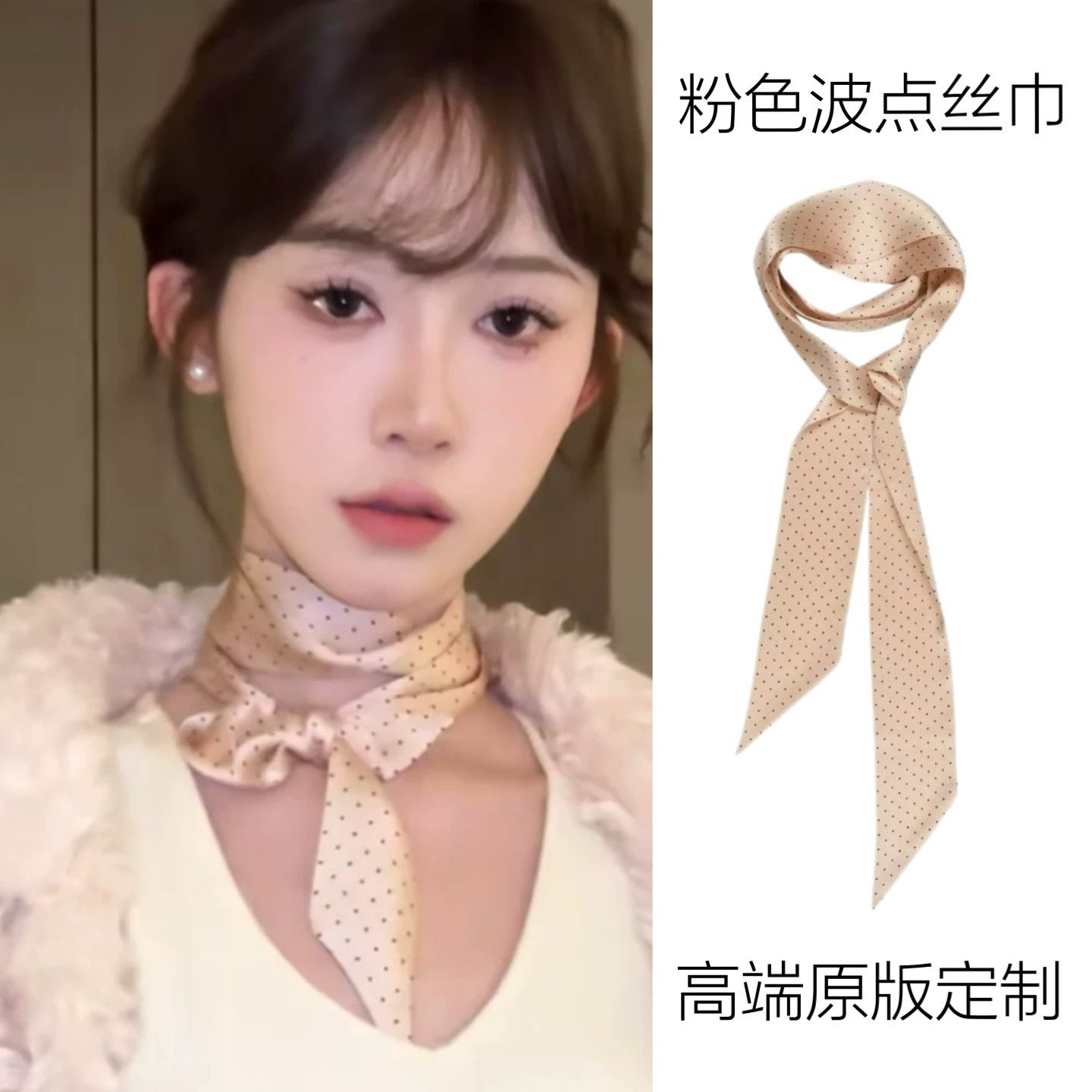 한국식 핑크 폴로 도트 실크 스카프 대기 목 스카프 기질 타이 손목 스카프 올 매치 롱 리본