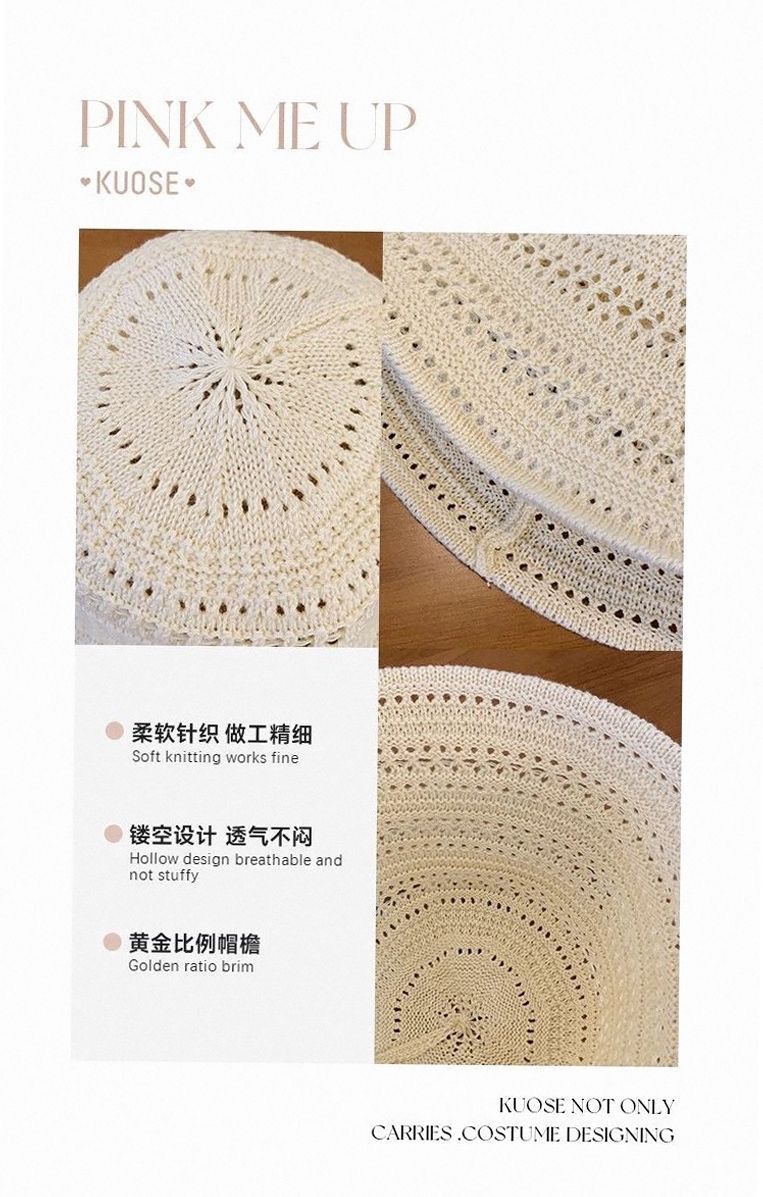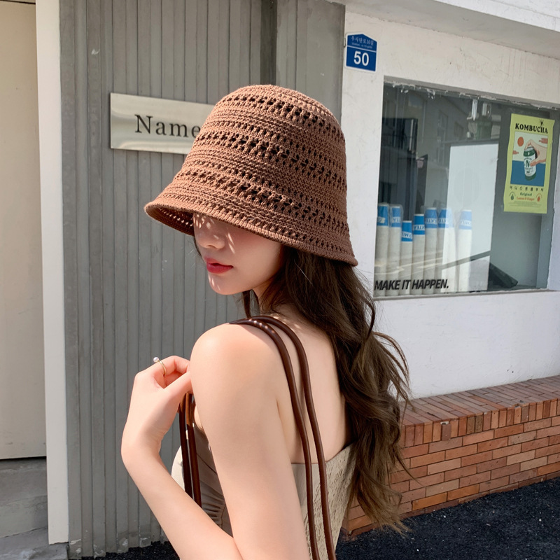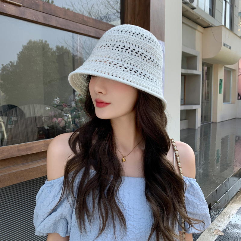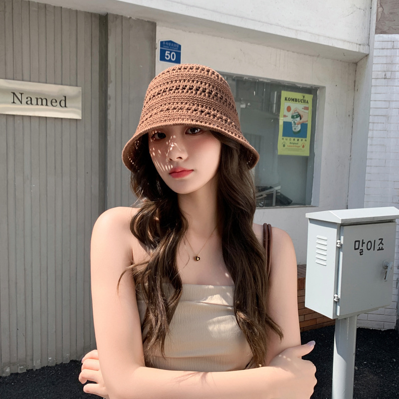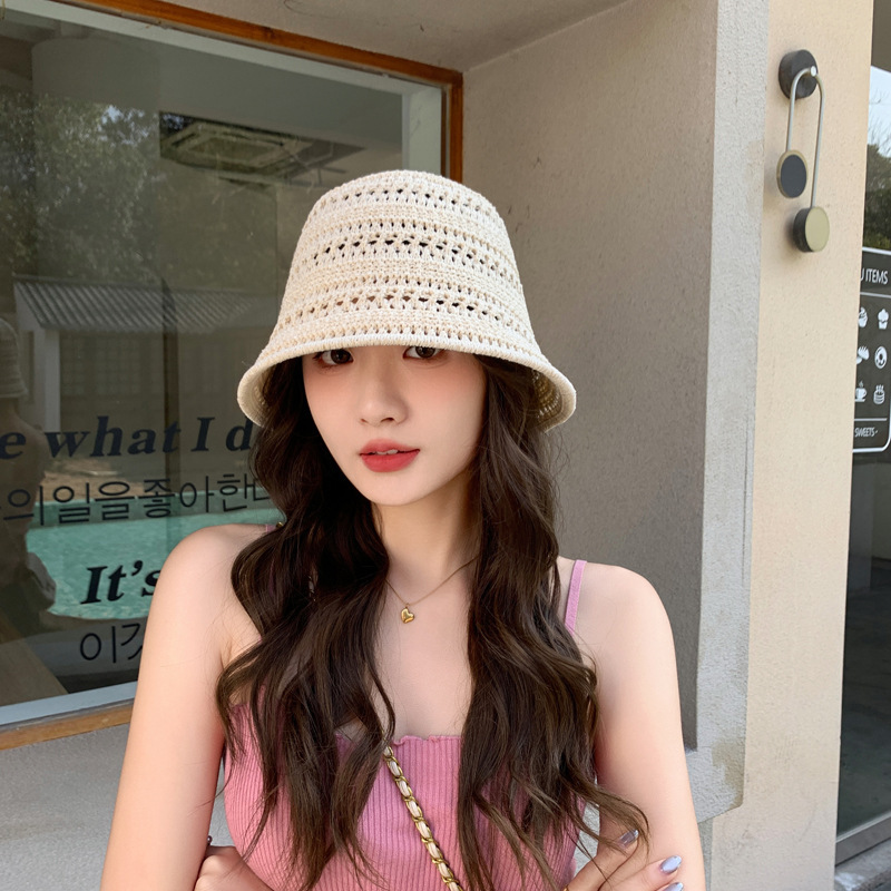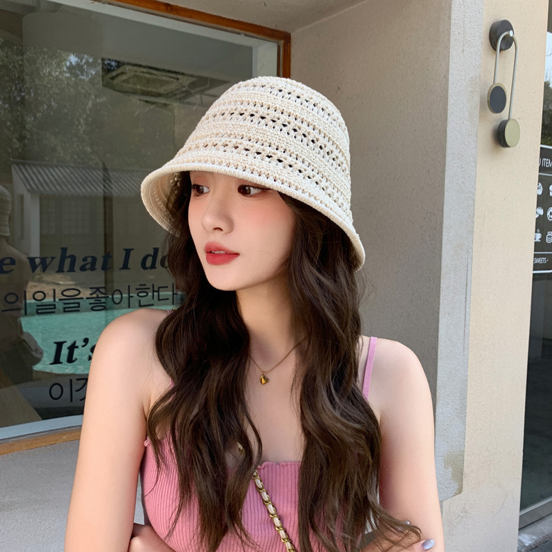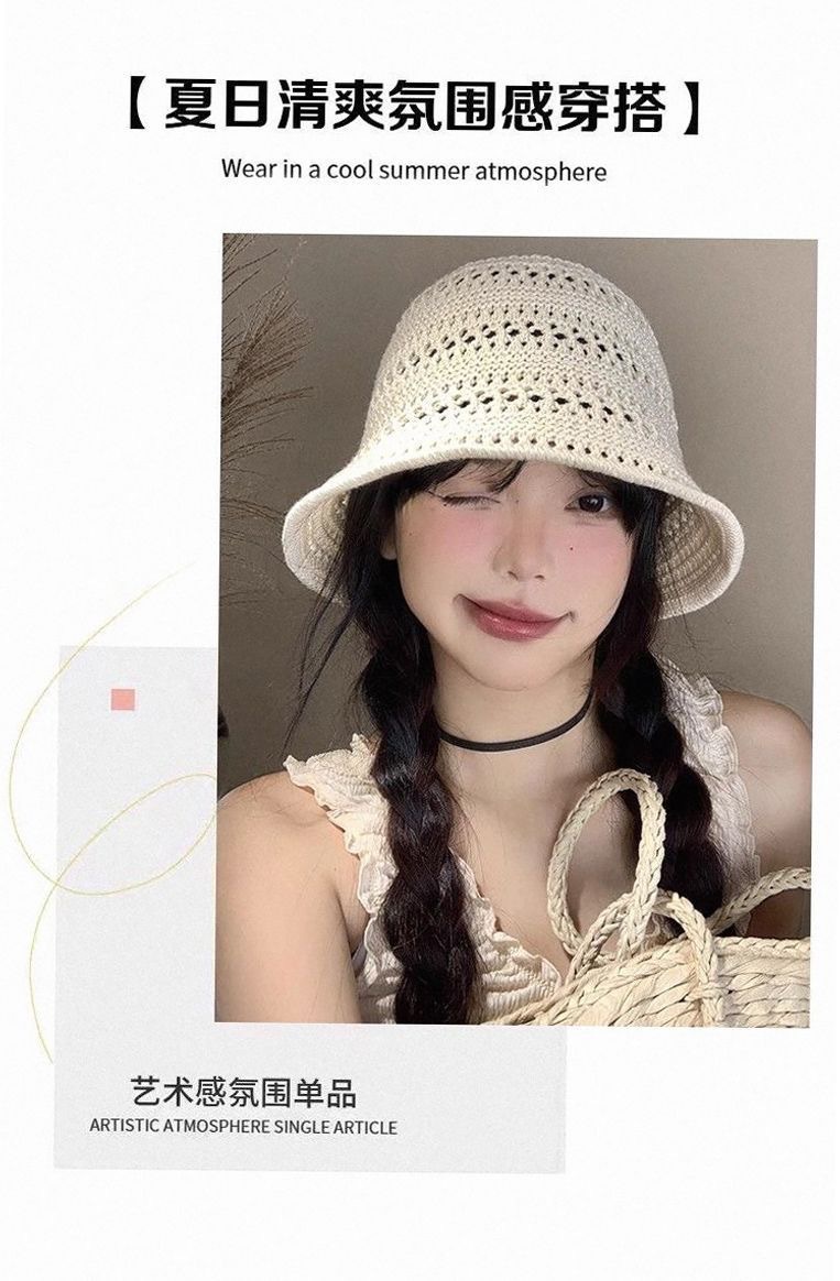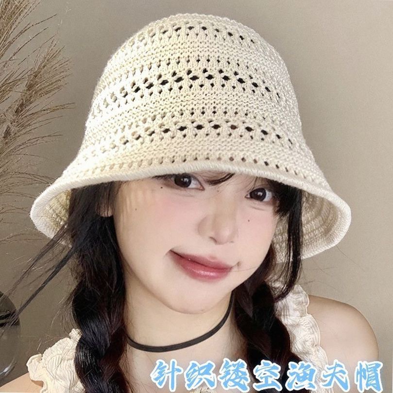 일본 니트 할로우 어부 모자 여성의 여름 2025 새로운 통기성 태양 보호 양산 모자 양동이 분지 모자 태양 모자스토어 가기