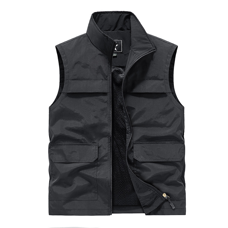 봄과 가을 새로운 남성 단색 스탠드 칼라 멀티 포켓 다기능 야외 방풍 방수 레저 사진 조끼스토어 가기