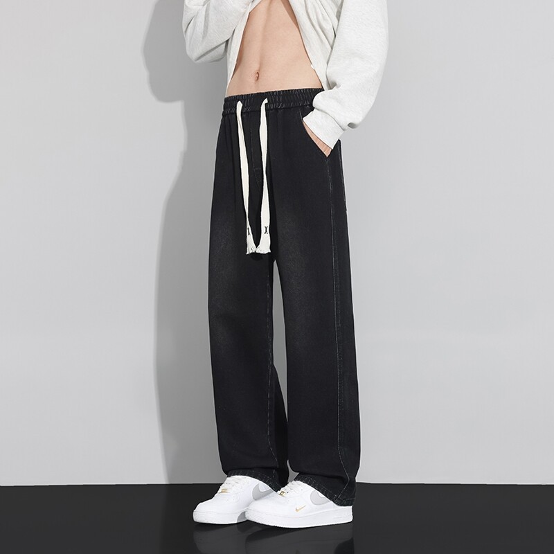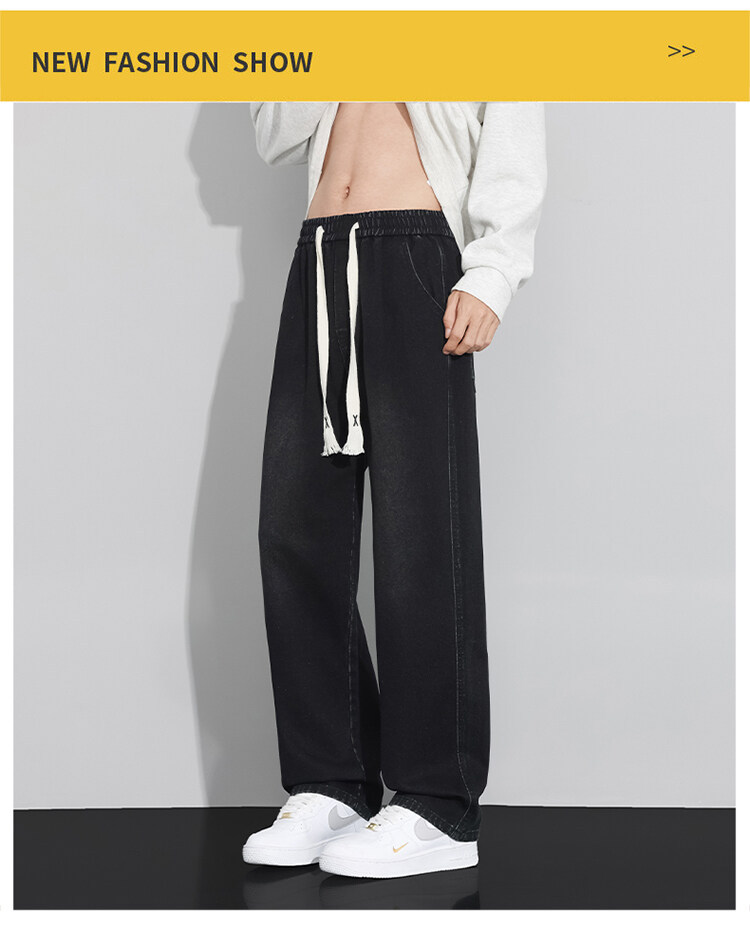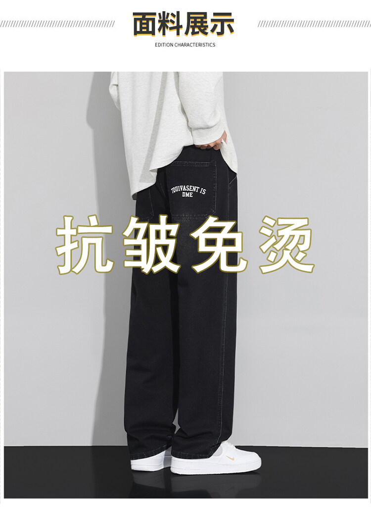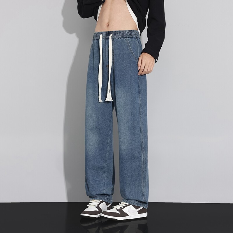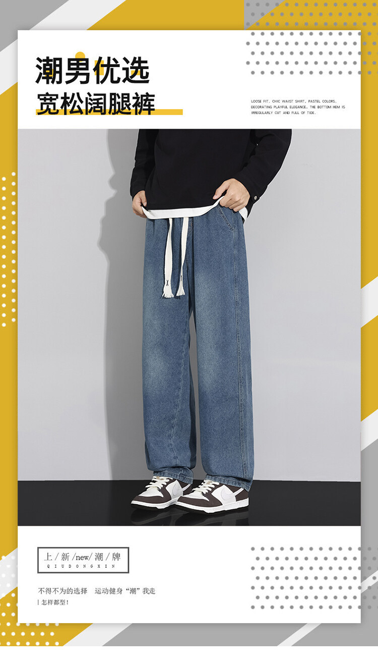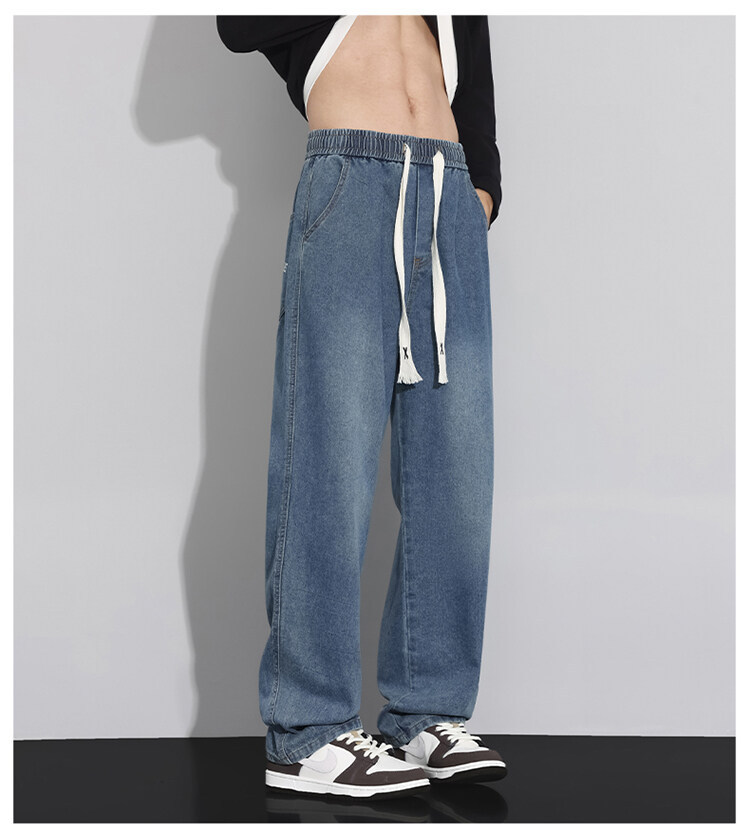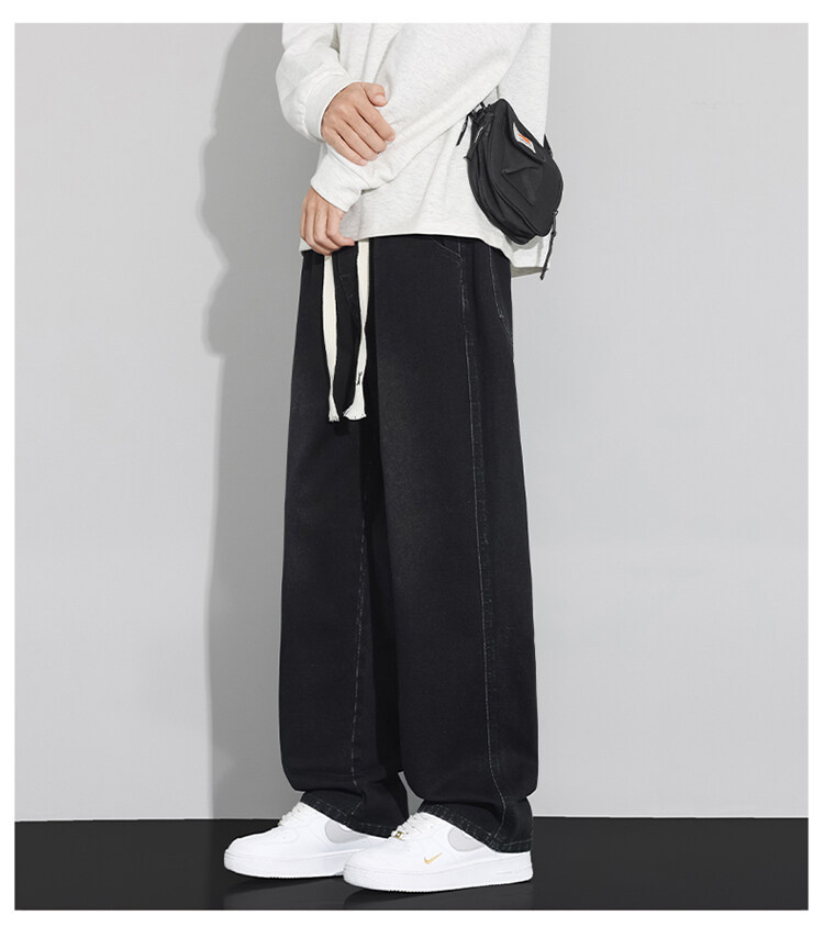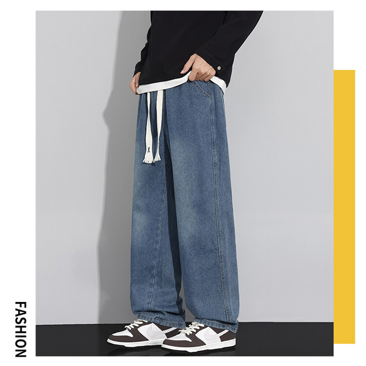 세탁 된 스트레이트 청바지 남성용 봄과 가을 뉴 루즈 레트로 남성용 롱 바지 아메리칸 스타일 하이 스트리트 캐주얼 바지