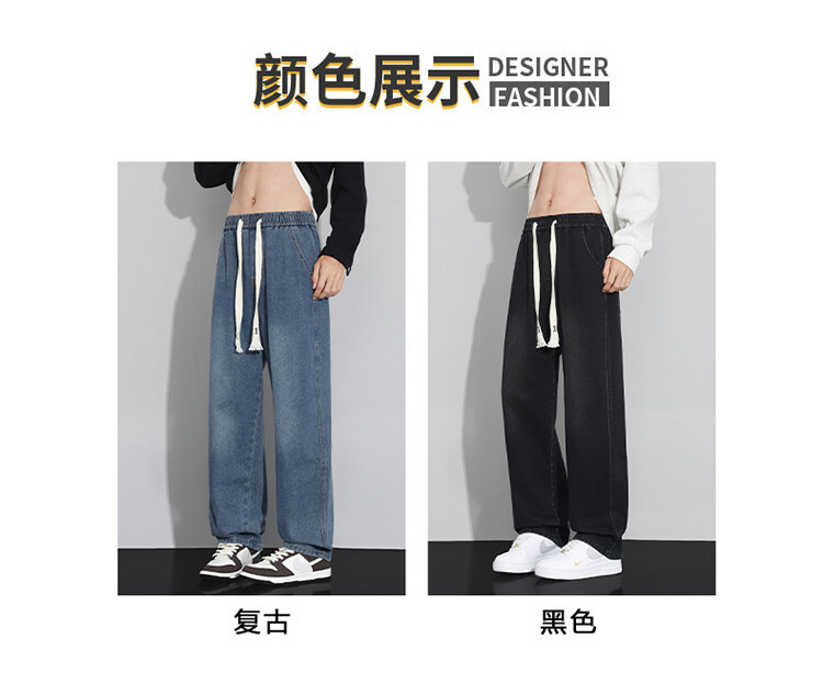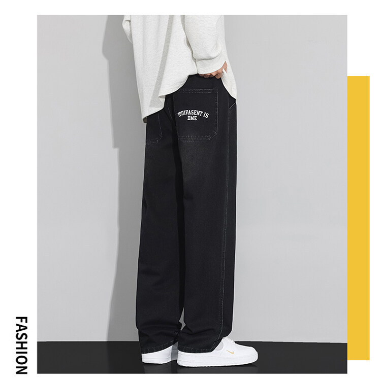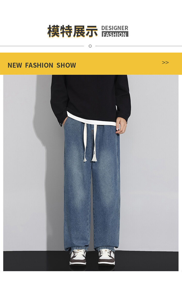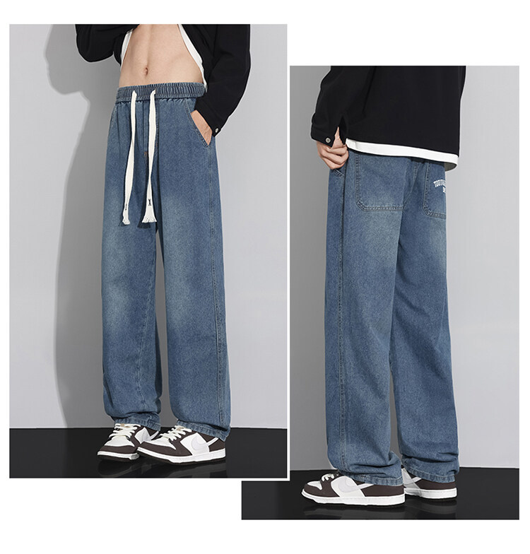 세탁 된 스트레이트 청바지 남성용 봄과 가을 뉴 루즈 레트로 남성용 롱 바지 아메리칸 스타일 하이 스트리트 캐주얼 바지스토어 가기