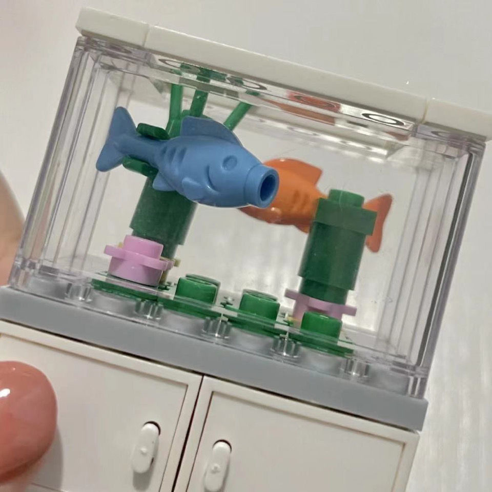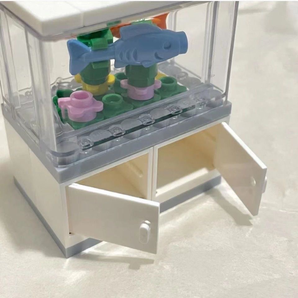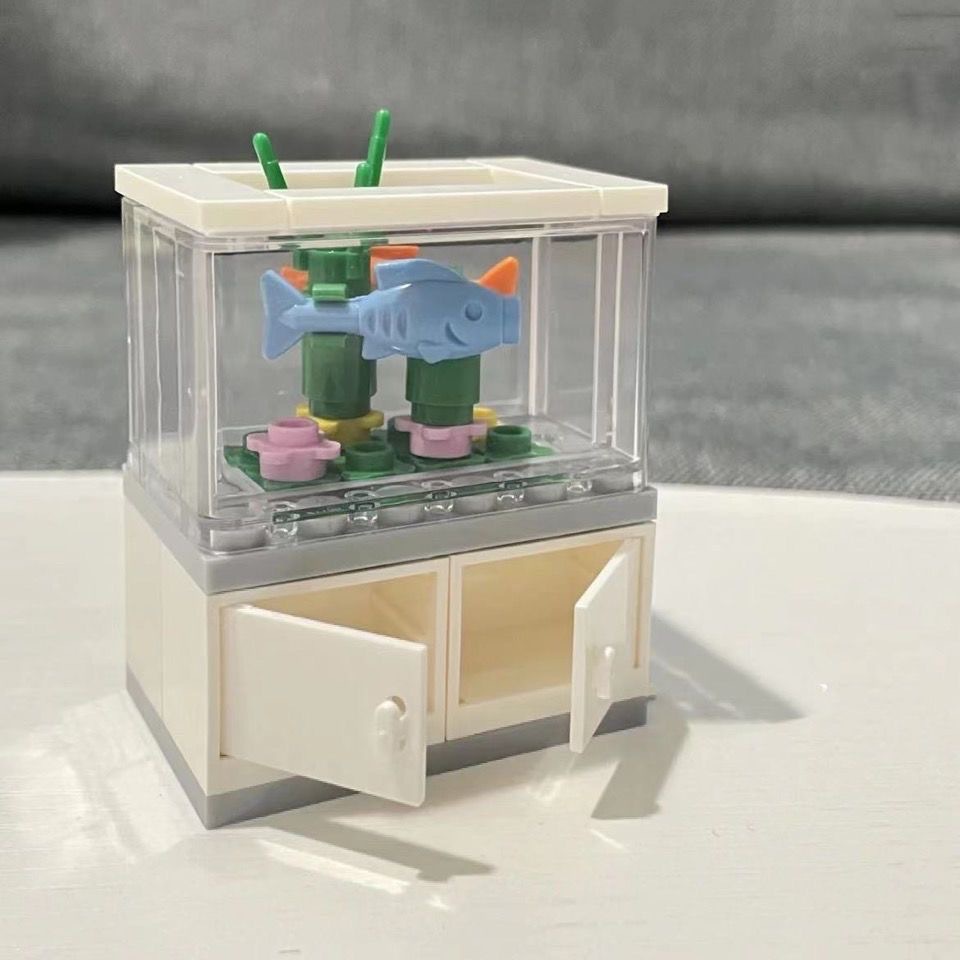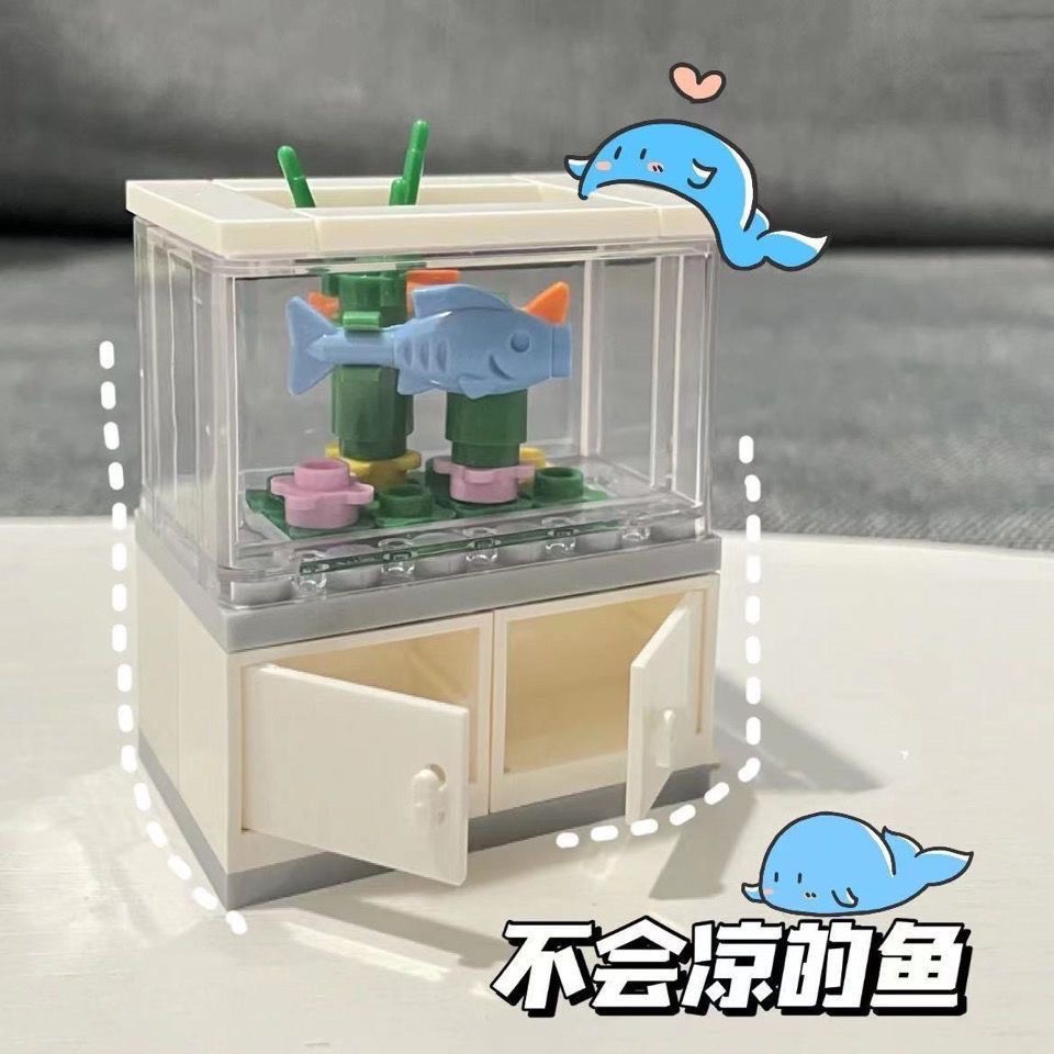 작은 빨간 책 같은 스타일 작은 물고기 탱크 건물 블록 인 조립 된 건물 블록 장식 인테리어 장식 선물 장난감 캐비닛 커플