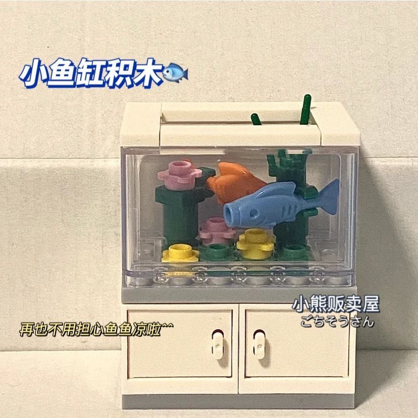 작은 빨간 책 같은 스타일 작은 물고기 탱크 건물 블록 인 조립 된 건물 블록 장식 인테리어 장식 선물 장난감 캐비닛 커플스토어 가기
