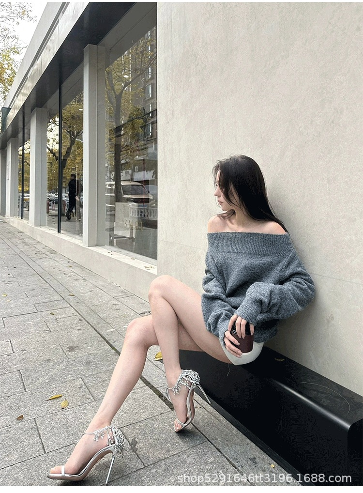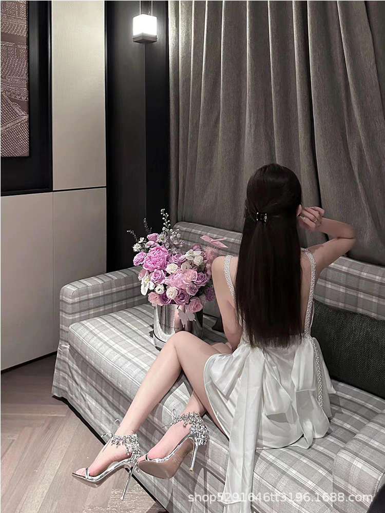 니치 프렌치 스타일 라인스톤 하이힐 여성용 스틸레토 힐 실버 요정 스타일 섹시한 오픈 발가락 크리스탈 샌들, 여름 버클스토어 가기