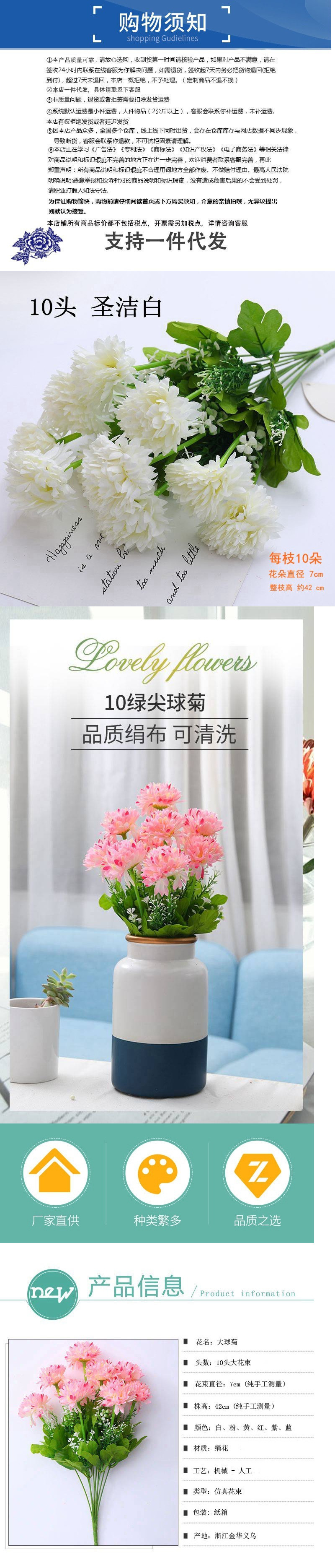 새로운 10 플라스틱 시뮬레이션 국화 수제 장미 튤립 실내 및 실외 장식 실크 천 가짜 꽃스토어 가기