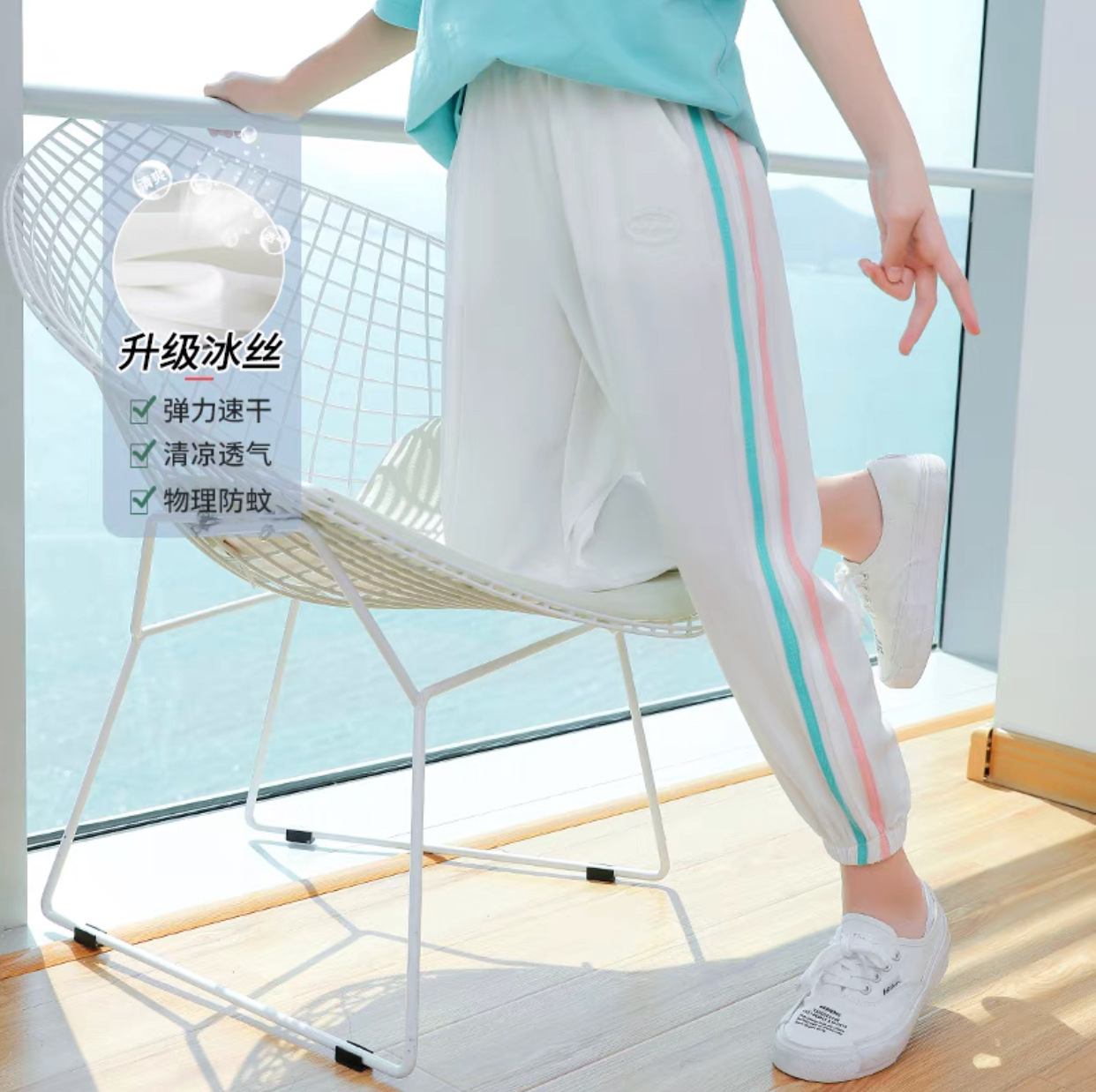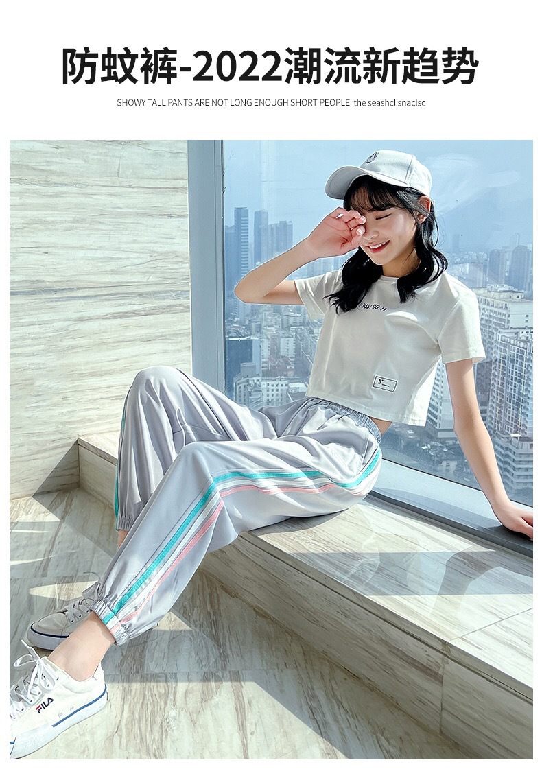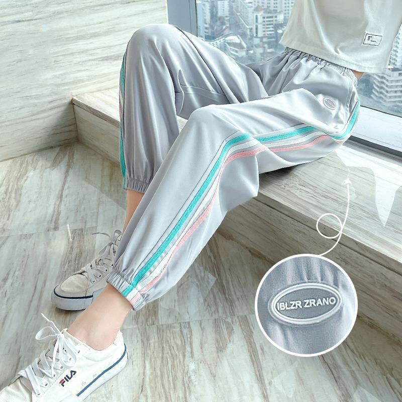 여아 바지 여름 얇은 여름 여아 바지 스포츠 바지 중대형 아동 유행 여름 착용 얼음 실크 아동 모기 방지 바지