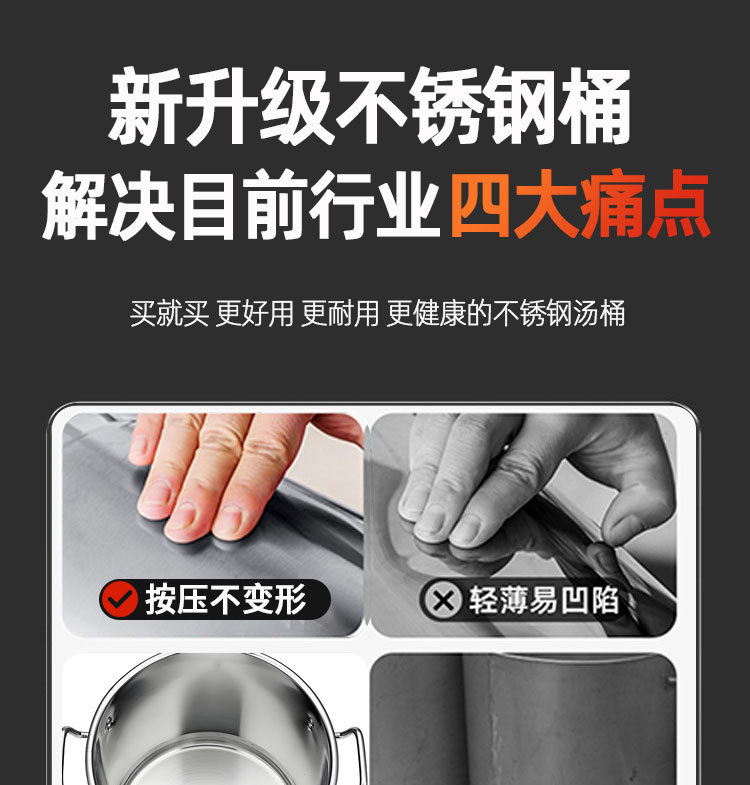 두꺼운 스테인레스 스틸 수프 버킷 물 수프 버킷 304 식품 등급 스튜 수프 냄비 뚜껑스토어 가기