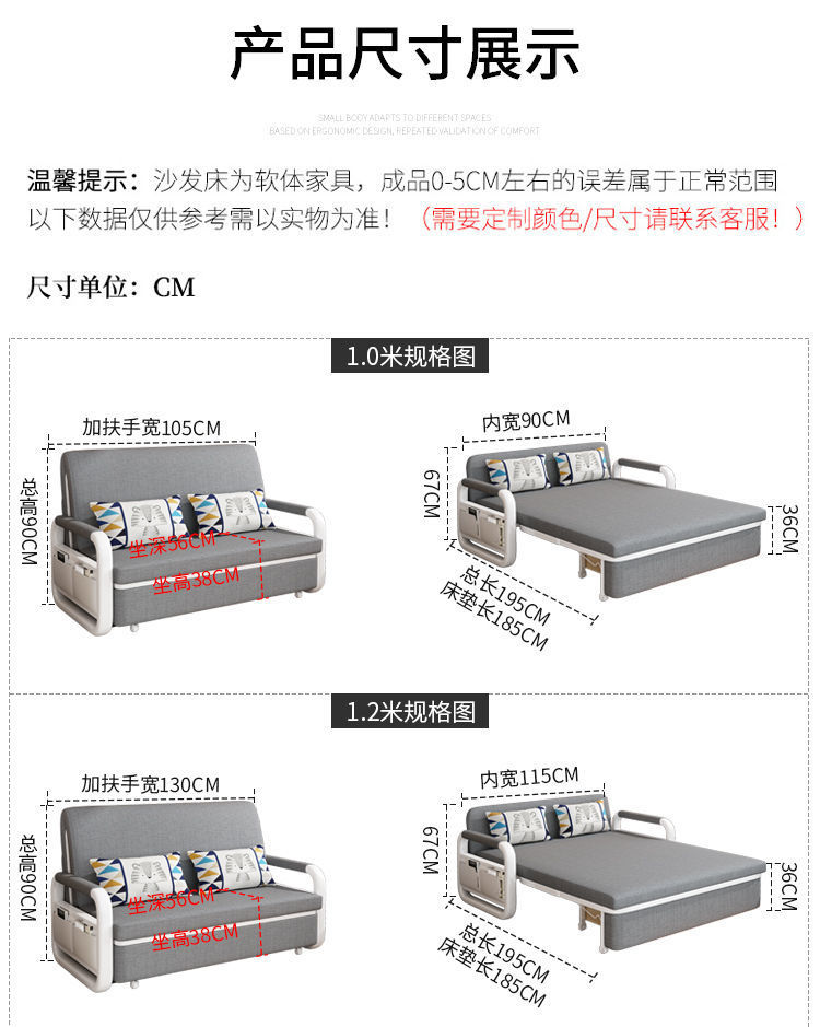 소파 침대 통합 이중 사용 접이식 다기능 거실 작은 아파트 싱글 침대 패브릭 발코니 경제적 인 특별 가격