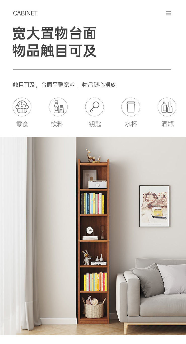 책장 보관 선반 바닥 책장 다층 가정 학생 거실 좁은 수납 선반 침실 벽 기울기 슈퍼 좁은 책장스토어 가기