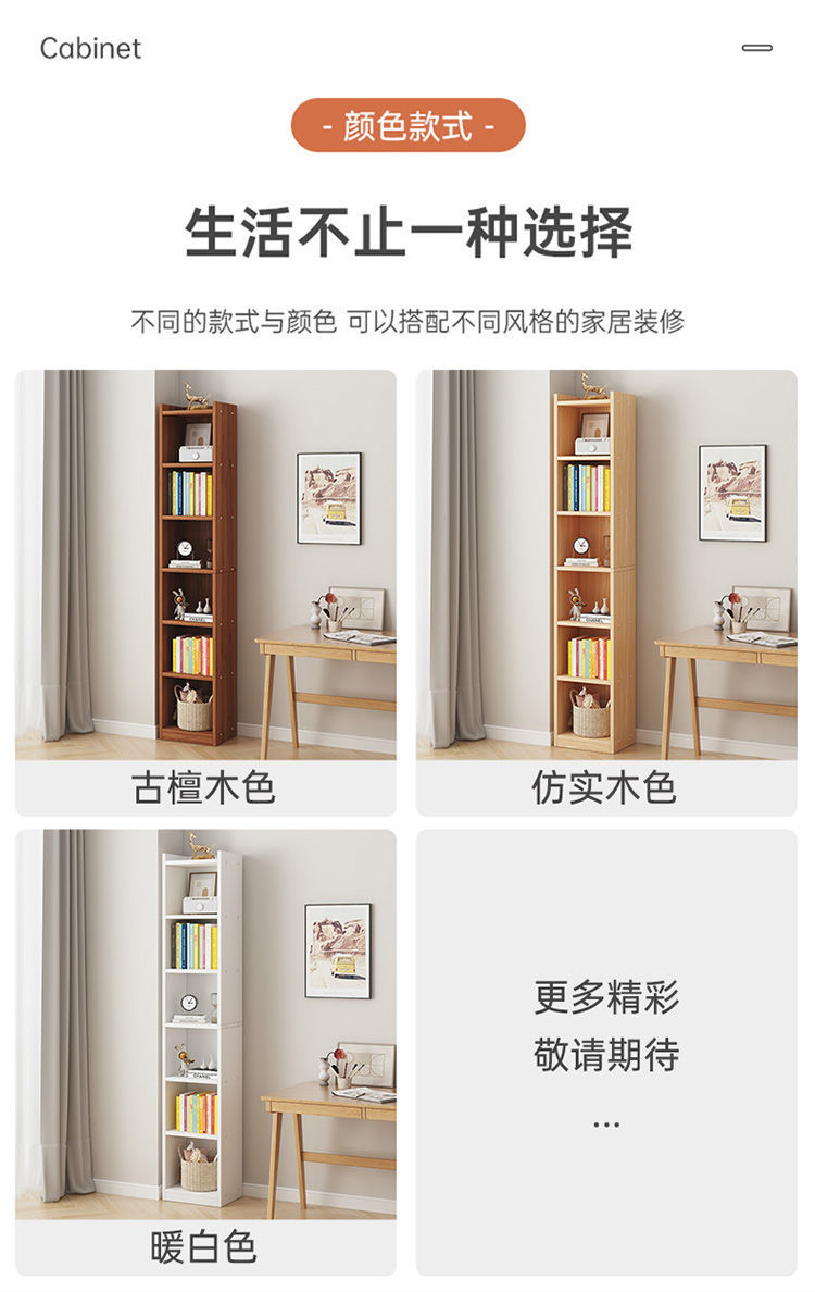 책장 보관 선반 바닥 책장 다층 가정 학생 거실 좁은 수납 선반 침실 벽 기울기 슈퍼 좁은 책장