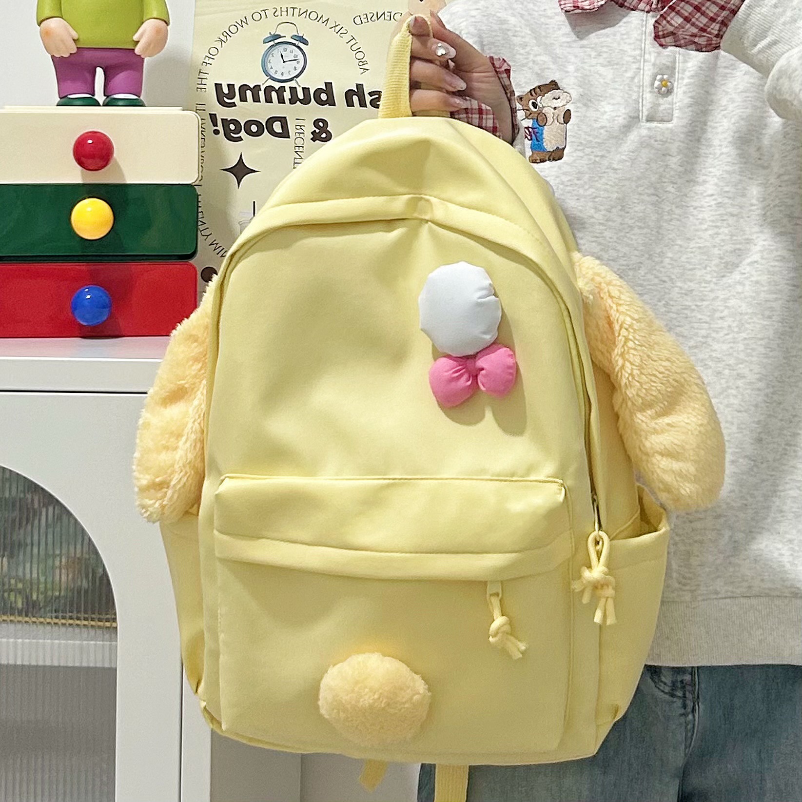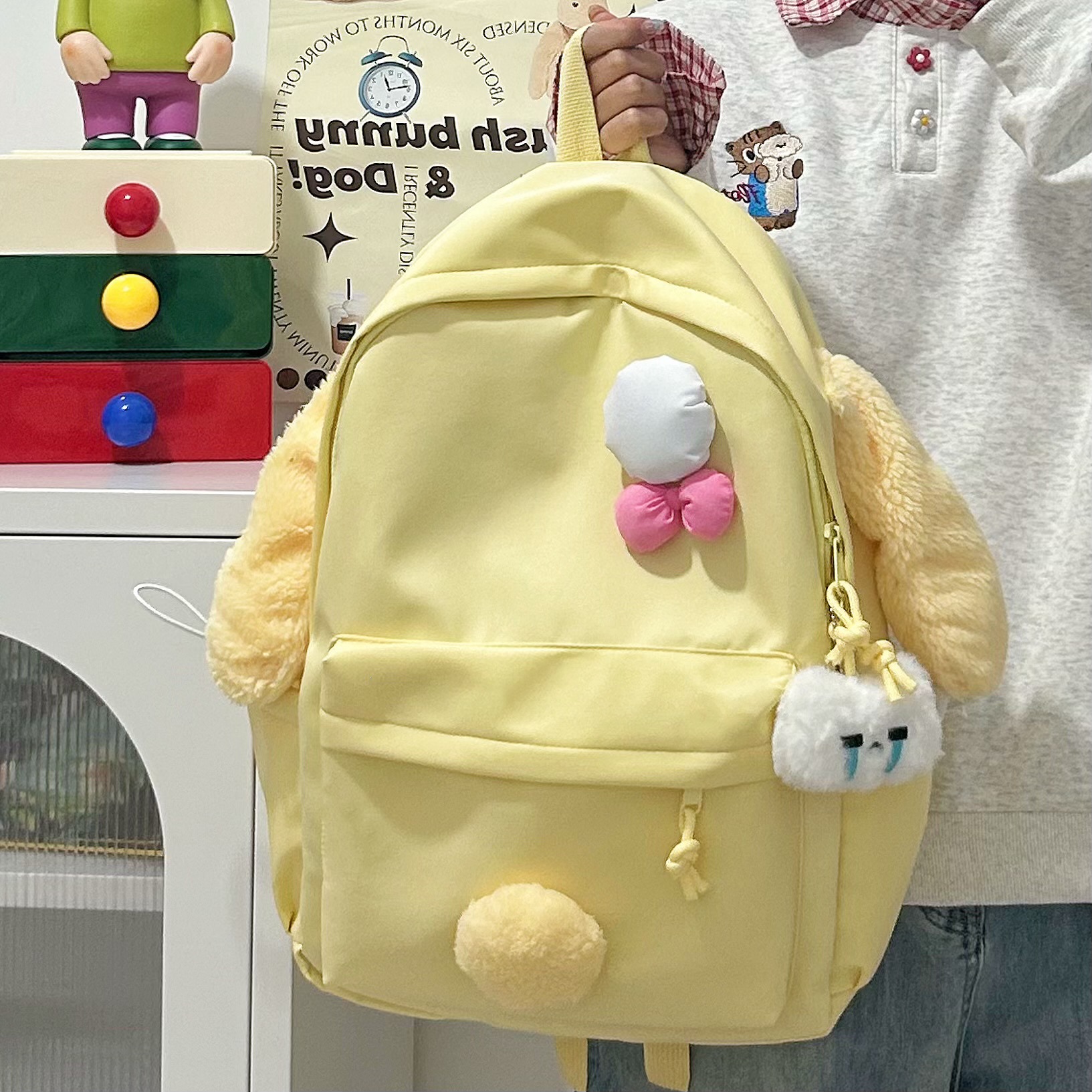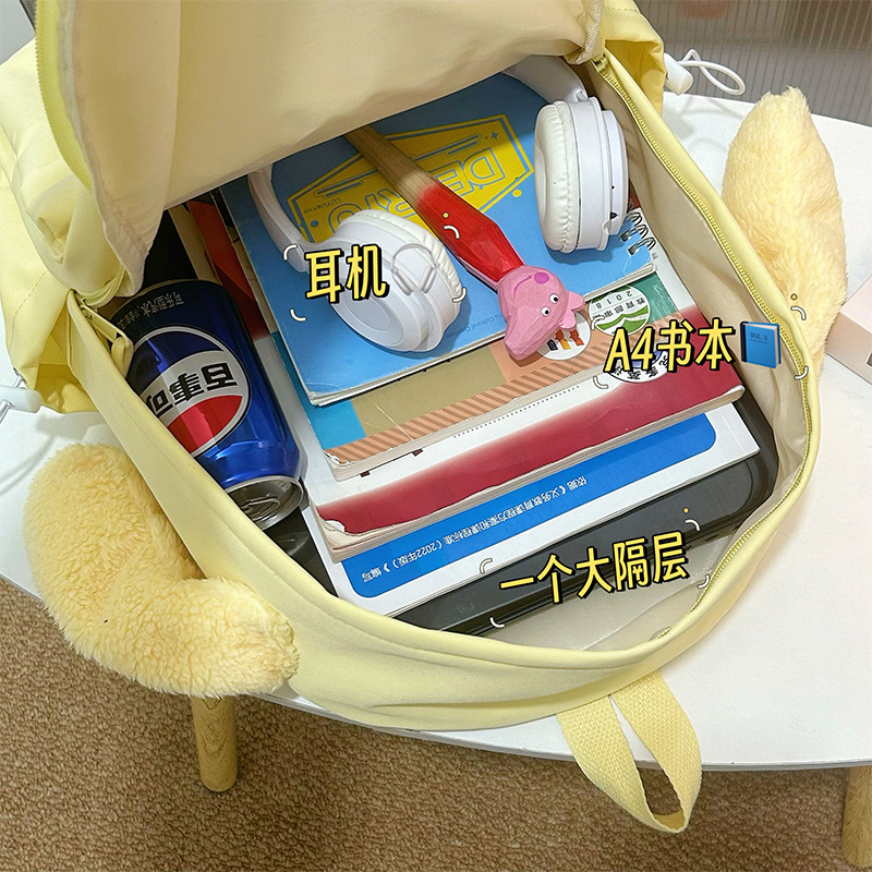 귀여운 만화 노란색 케이크 대용량 인형 작은 가방 새로운 털 소녀의 달콤한 배낭 여자를위한스토어 가기