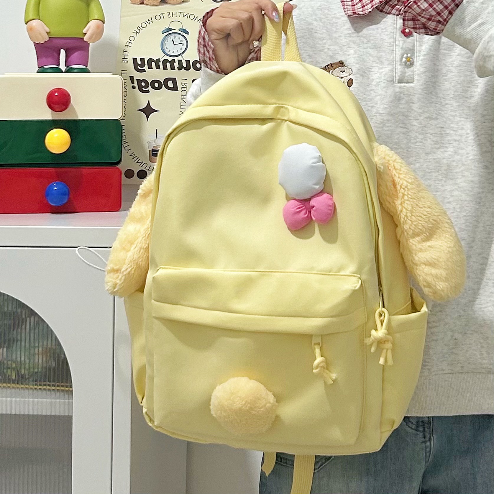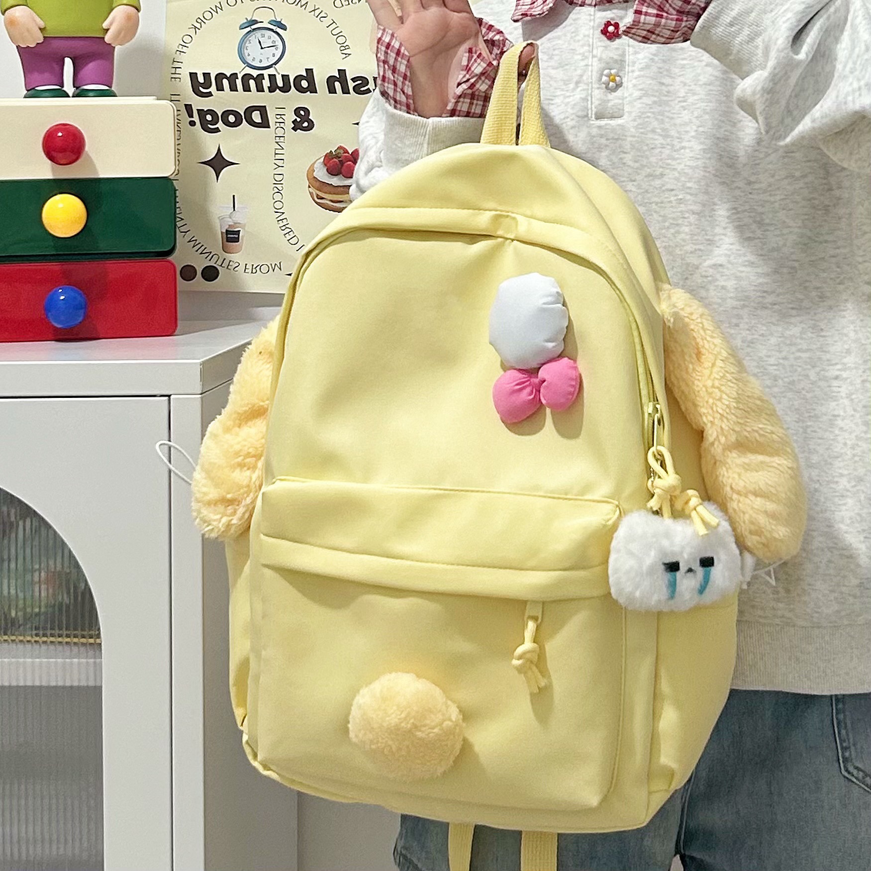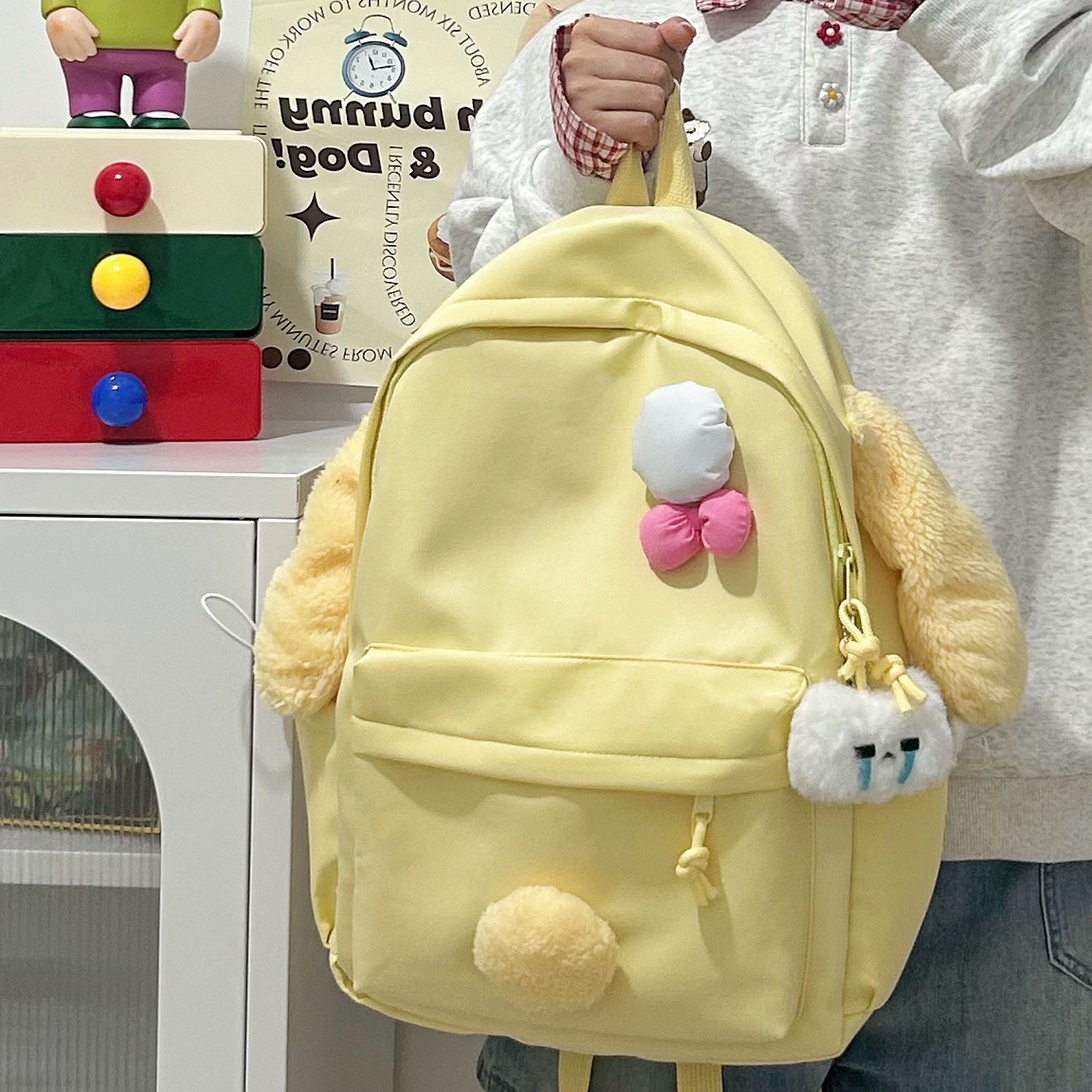 귀여운 만화 노란색 케이크 대용량 인형 작은 가방 새로운 털 소녀의 달콤한 배낭 여자를위한스토어 가기
