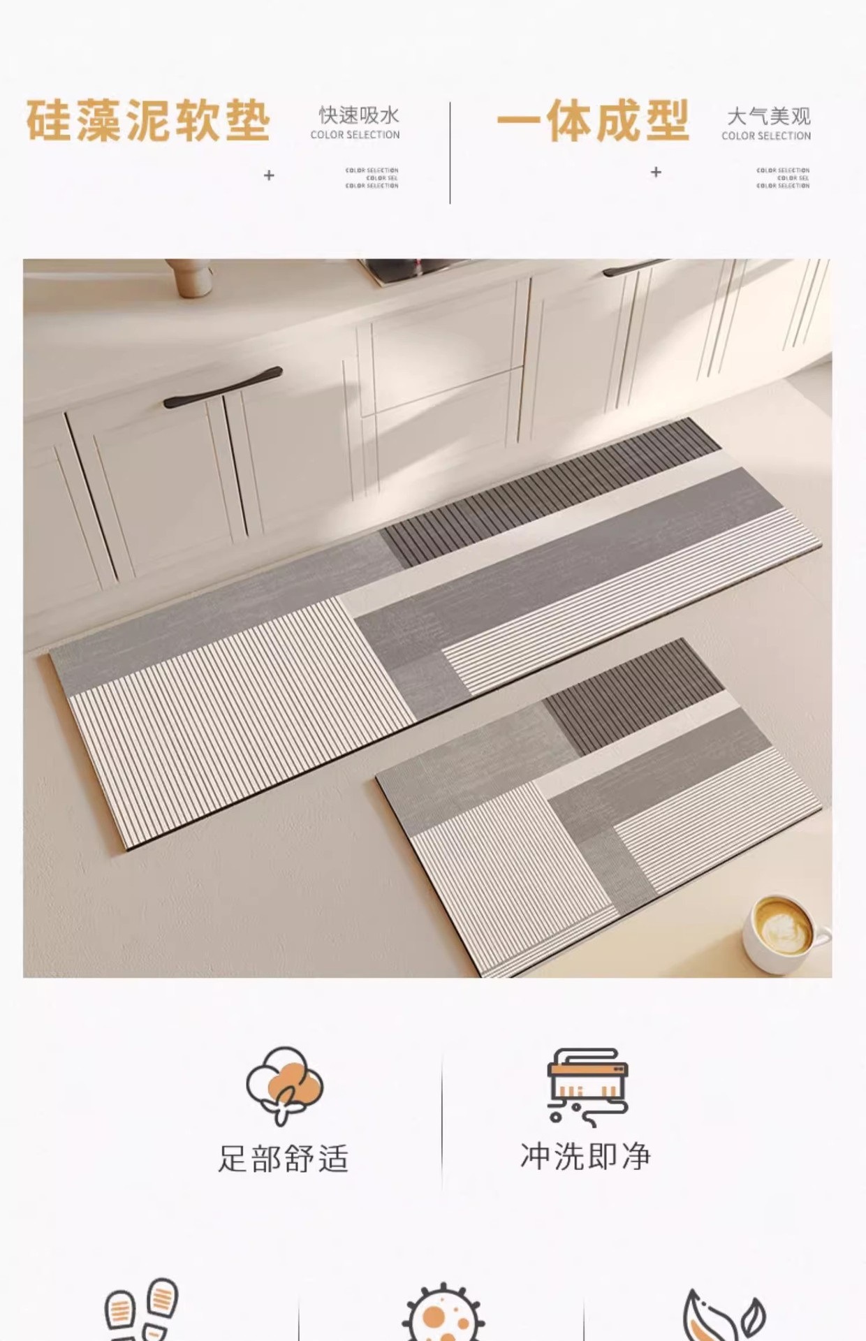 국경 간 주방 바닥 매트 가정용 물 흡수 및 오일 흡수 레스토랑 바닥 매트 간단한 스타일 미끄럼 방지 소프트 디 아톰 진흙 바닥 매트 절단 가능