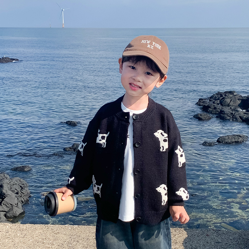 [95% 호의율] 소년 스웨터 소녀 어린이 니트 코트 2025 가을 새 아기 만화 작은스토어 가기
