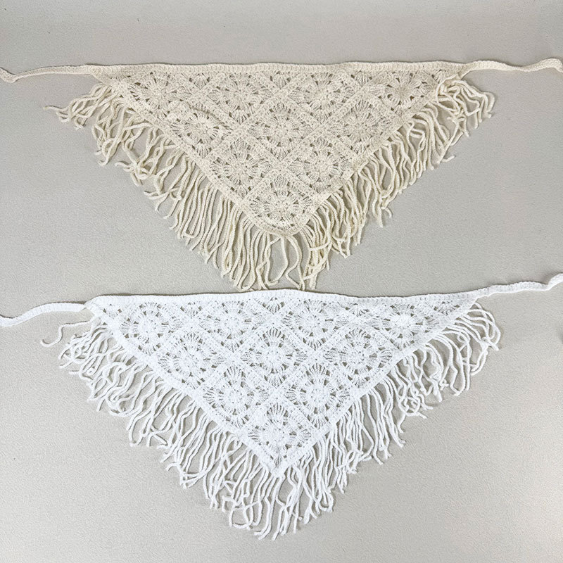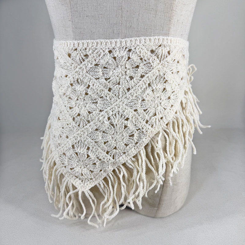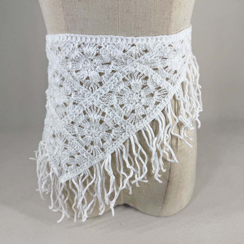 손으로 짠 중공 디자인 레이스 업 삼각형 스카프 스트랩 접이식 패션 허리 스카프 방귀 커튼 니트 스카프 도매