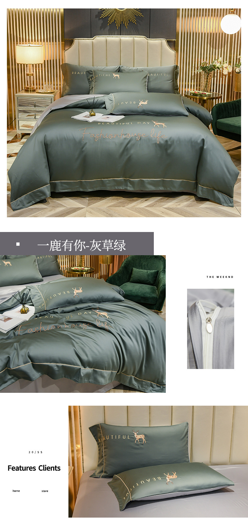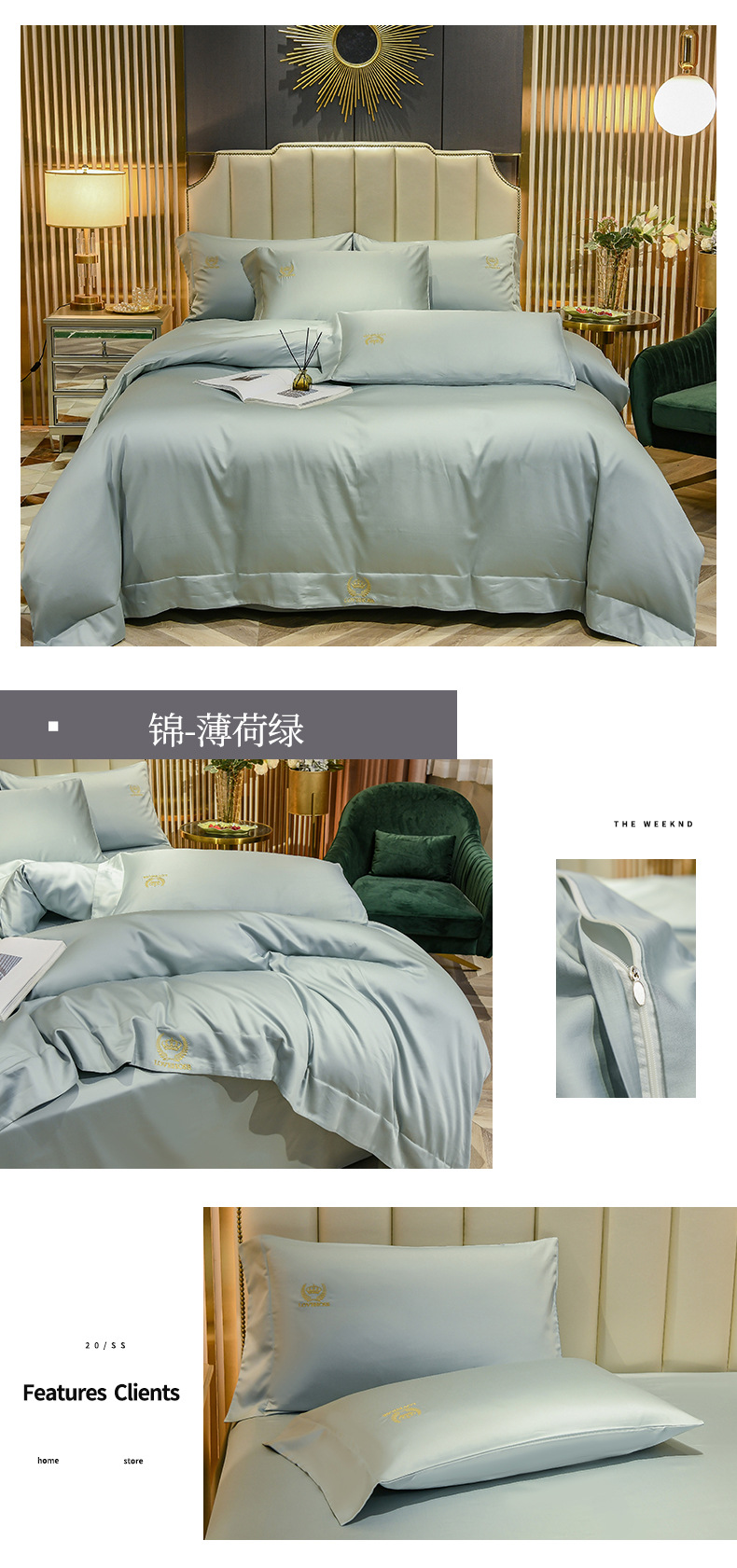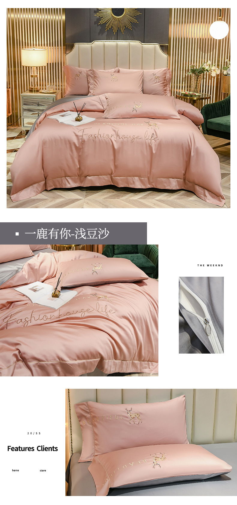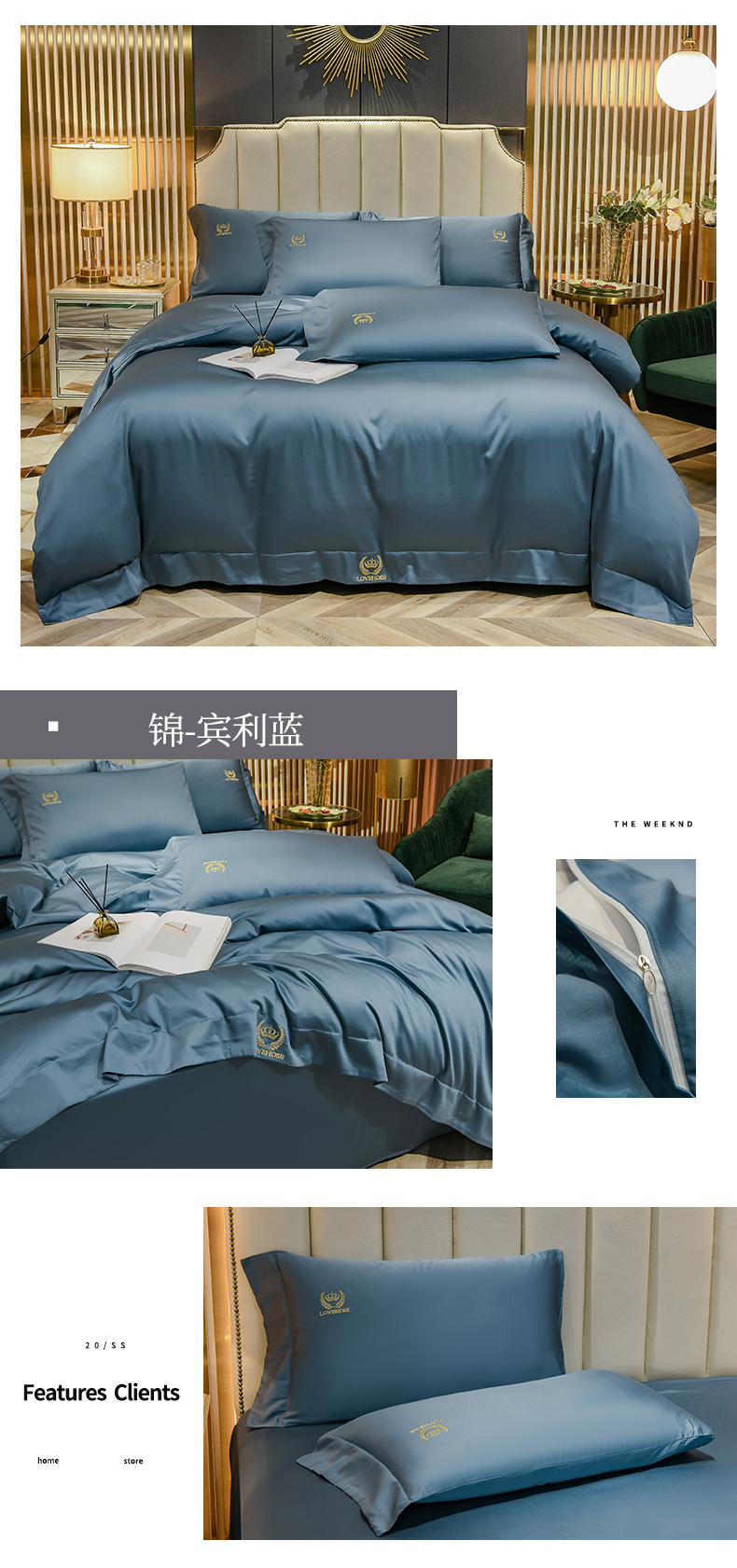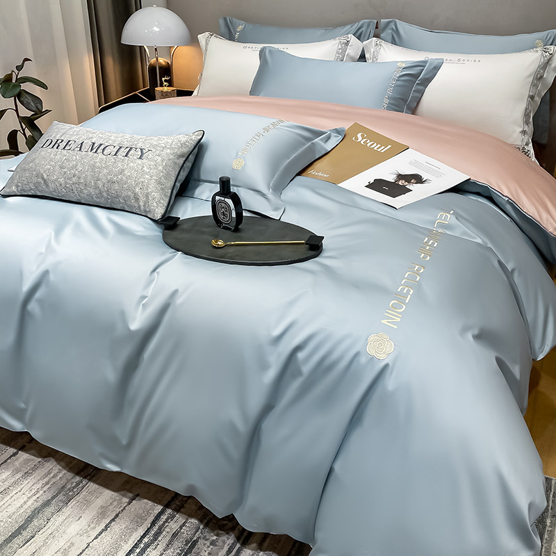 2025 여름 아이스 실크 4 피스 세트 라이트 럭셔리 하이 엔드 워시 실크 퀼트 커버 침대 시트 3 피스 침구 세트스토어 가기