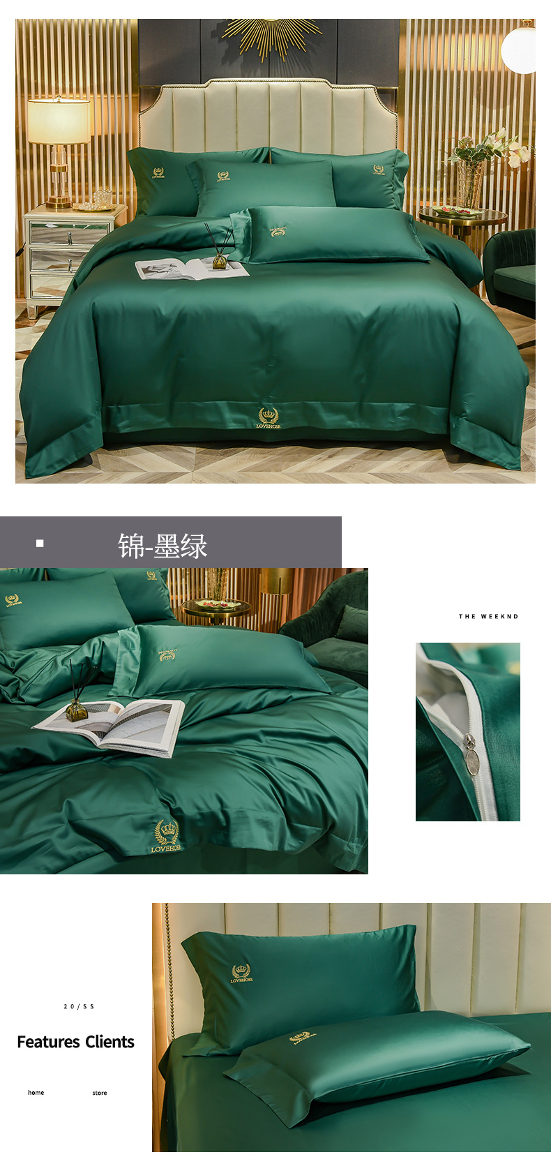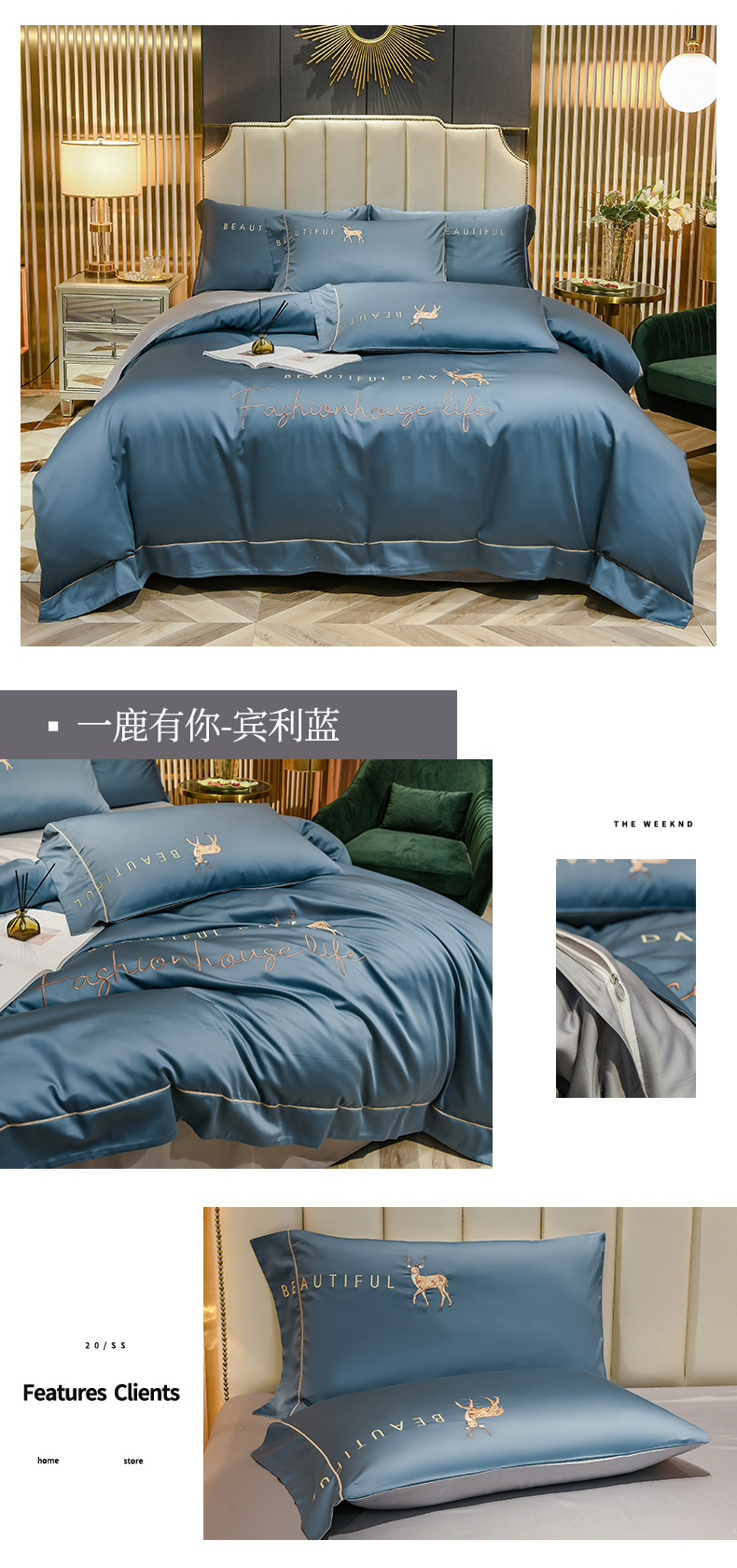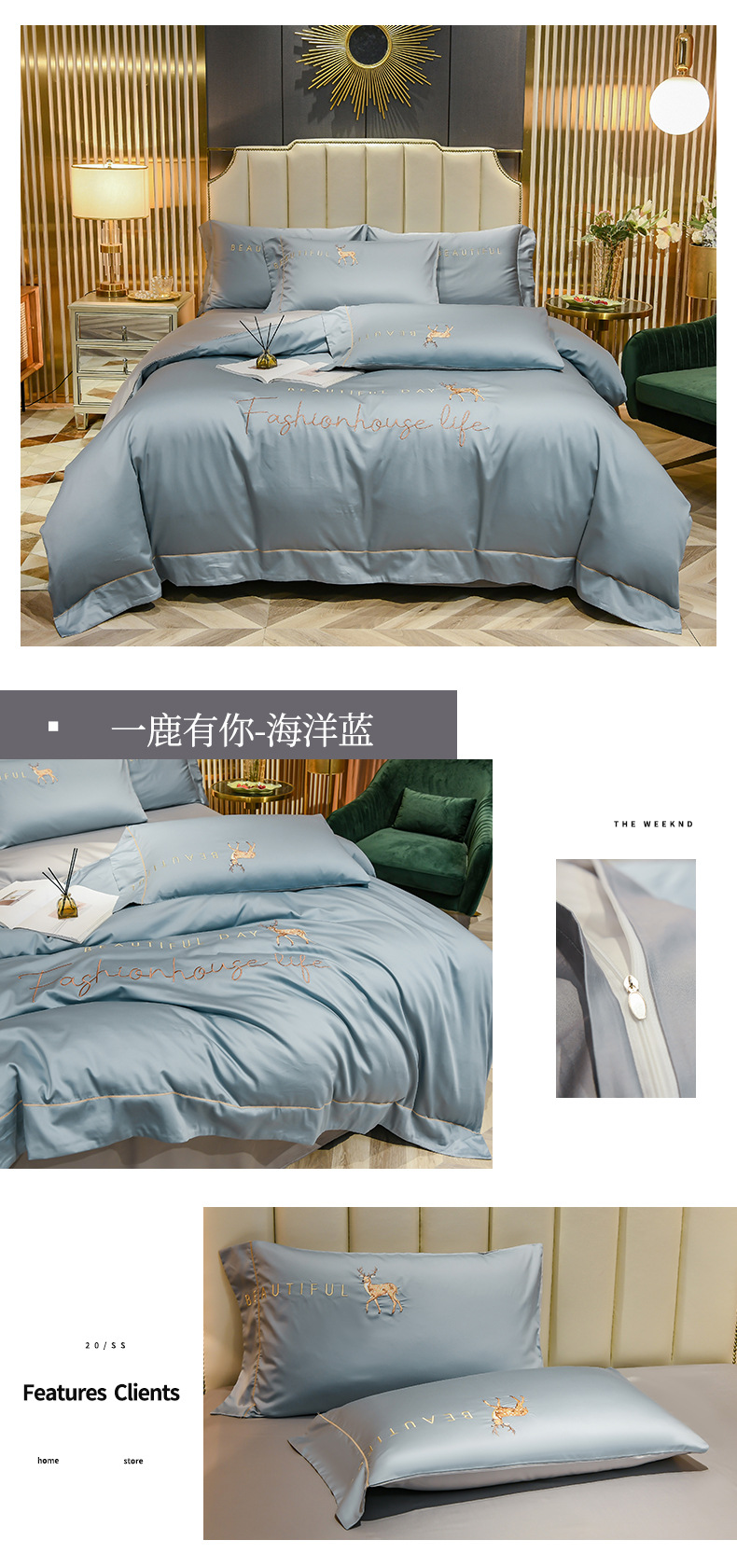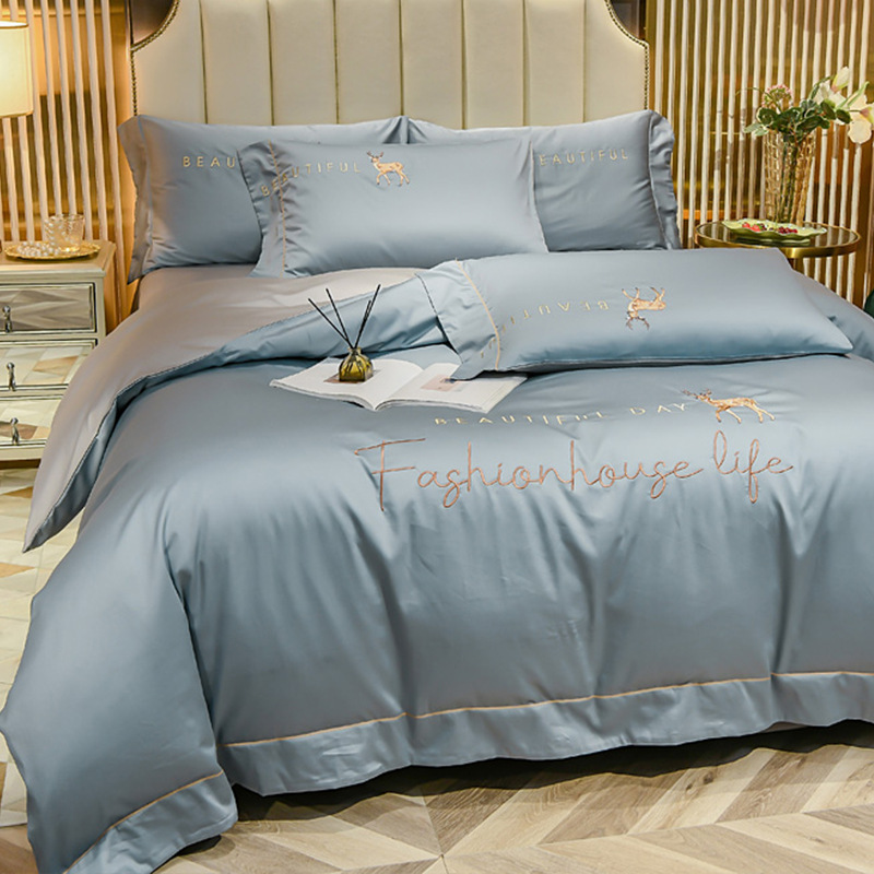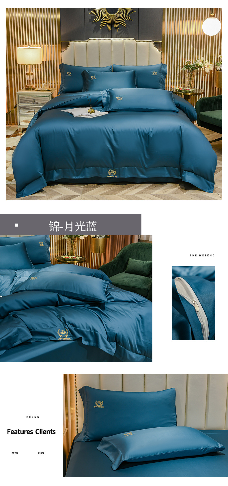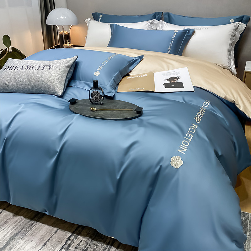 2025 여름 아이스 실크 4 피스 세트 라이트 럭셔리 하이 엔드 워시 실크 퀼트 커버 침대 시트 3 피스 침구 세트스토어 가기