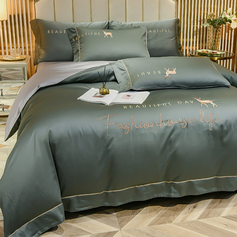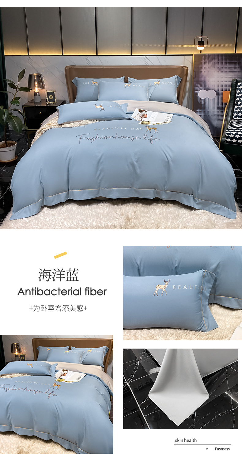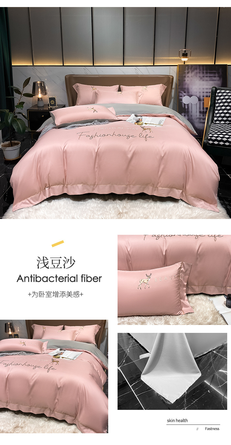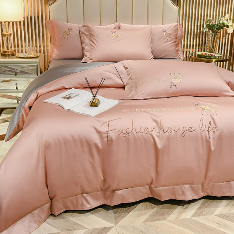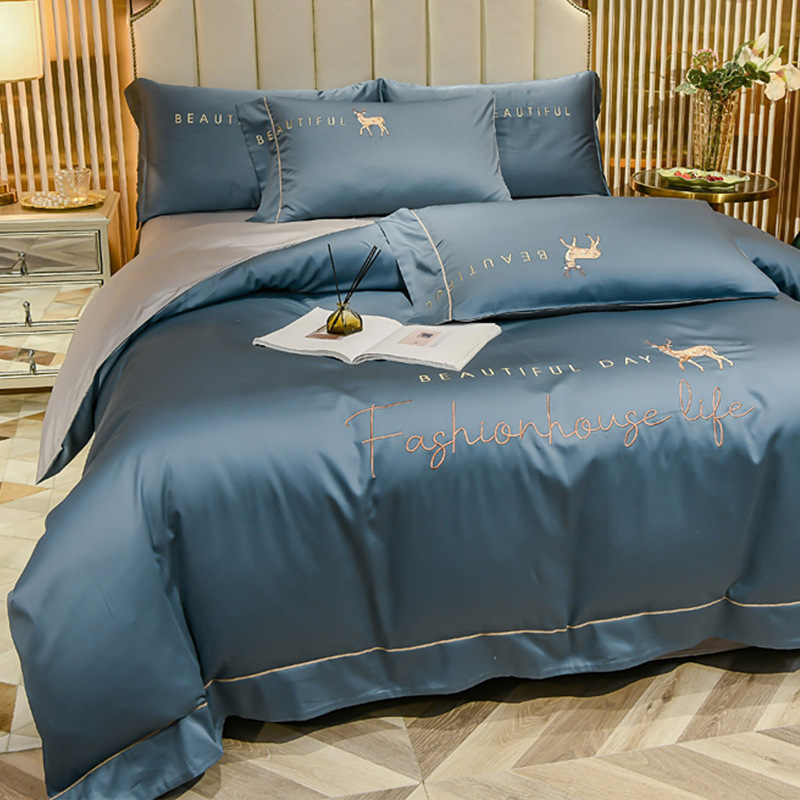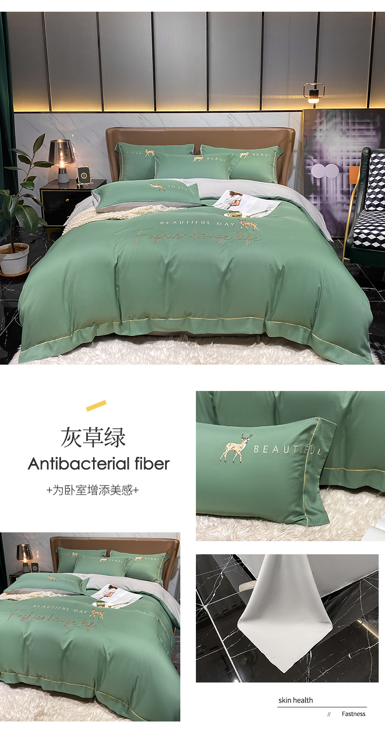 2025 여름 아이스 실크 4 피스 세트 라이트 럭셔리 하이 엔드 워시 실크 퀼트 커버 침대 시트 3 피스 침구 세트스토어 가기