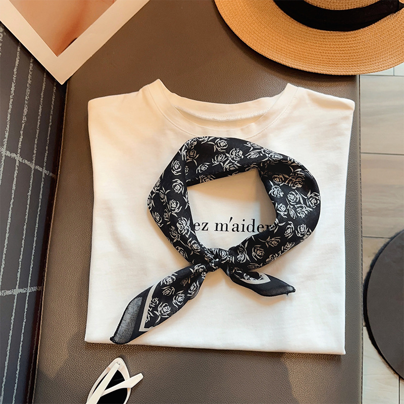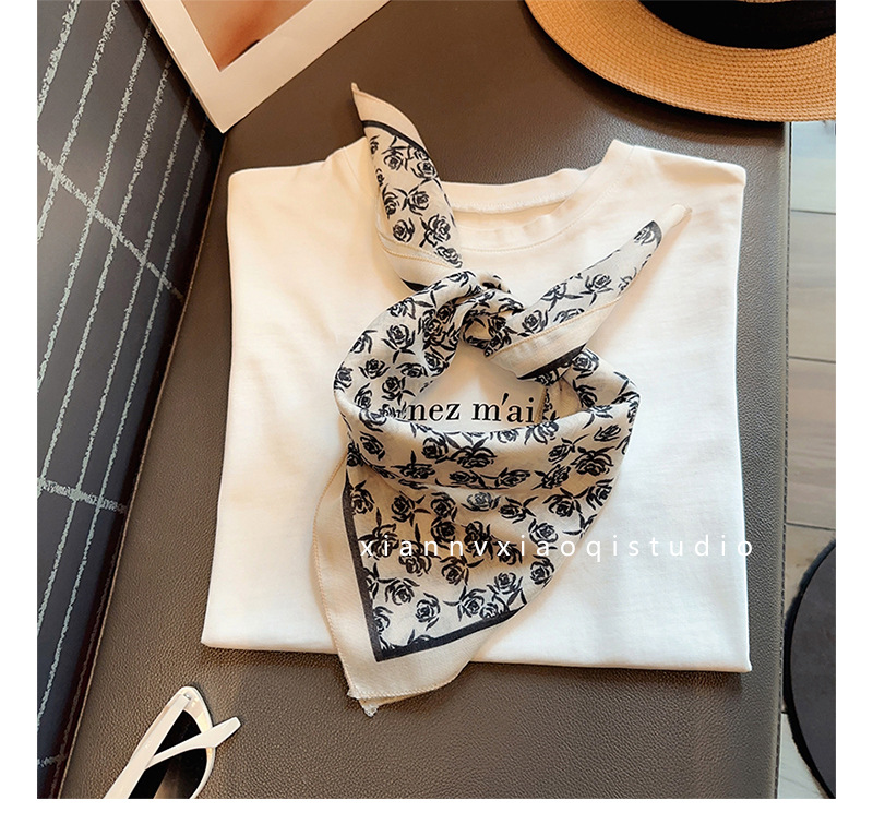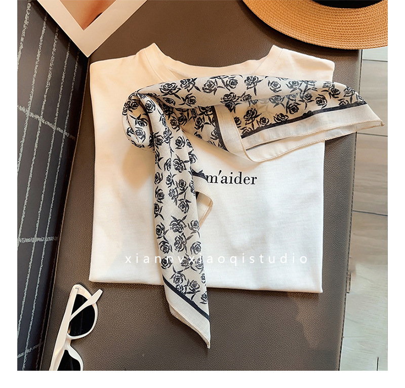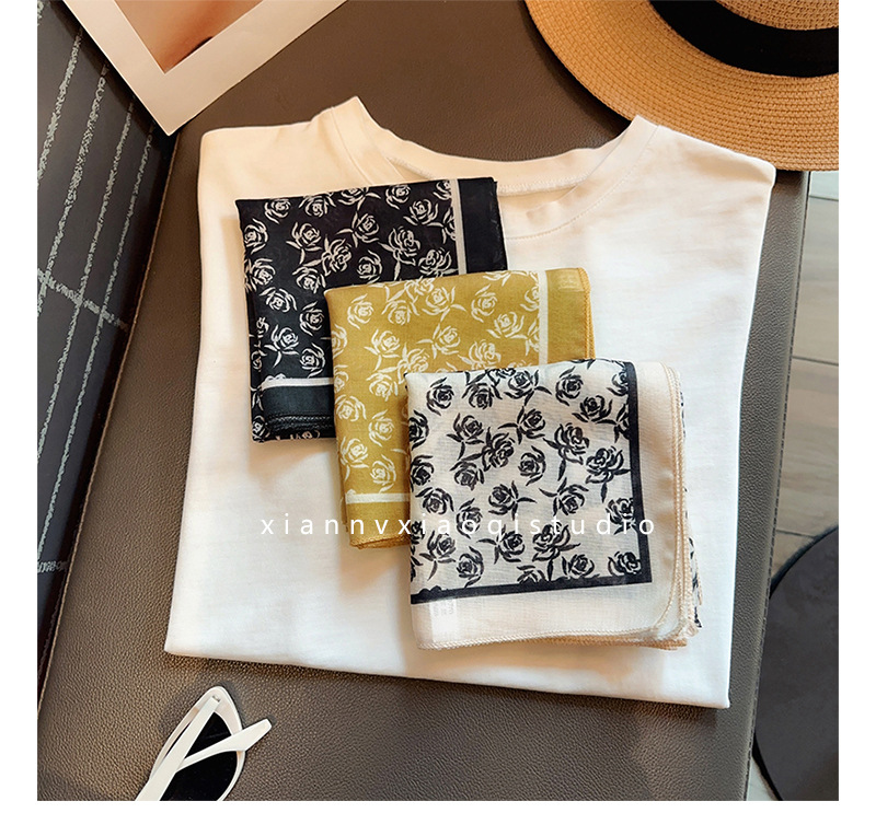 레트로 블랙 로즈 코튼 린넨 스카프 여성용 작은 사각형 스카프 새로운 봄, 여름 레이어링 인기 스카프 거즈 스카프 얇은스토어 가기