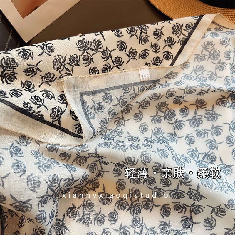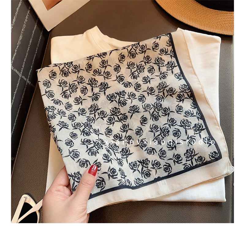 레트로 블랙 로즈 코튼 린넨 스카프 여성용 작은 사각형 스카프 새로운 봄, 여름 레이어링 인기 스카프 거즈 스카프 얇은